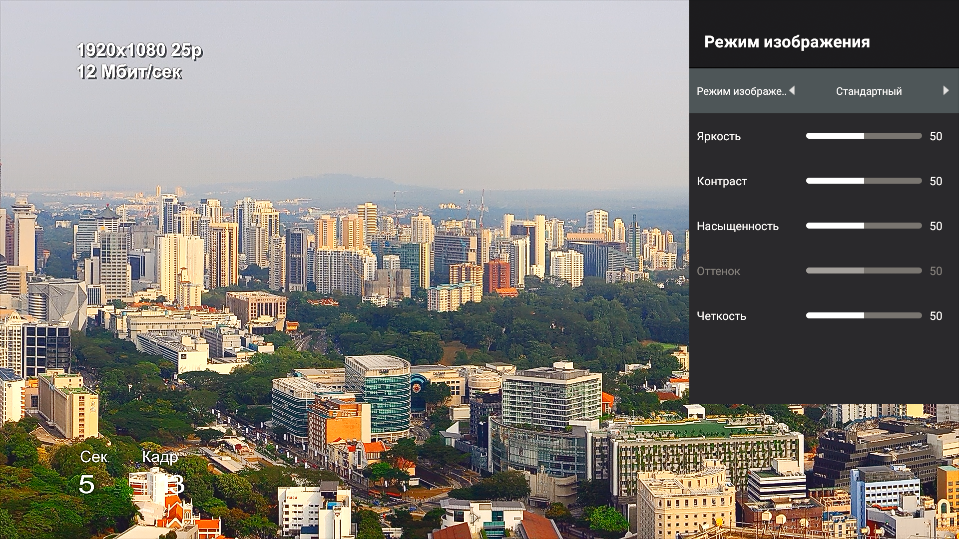 Только при использовании штатного плеера и при подключении по HDMI доступны немногочисленные настройки изображения и звука.
