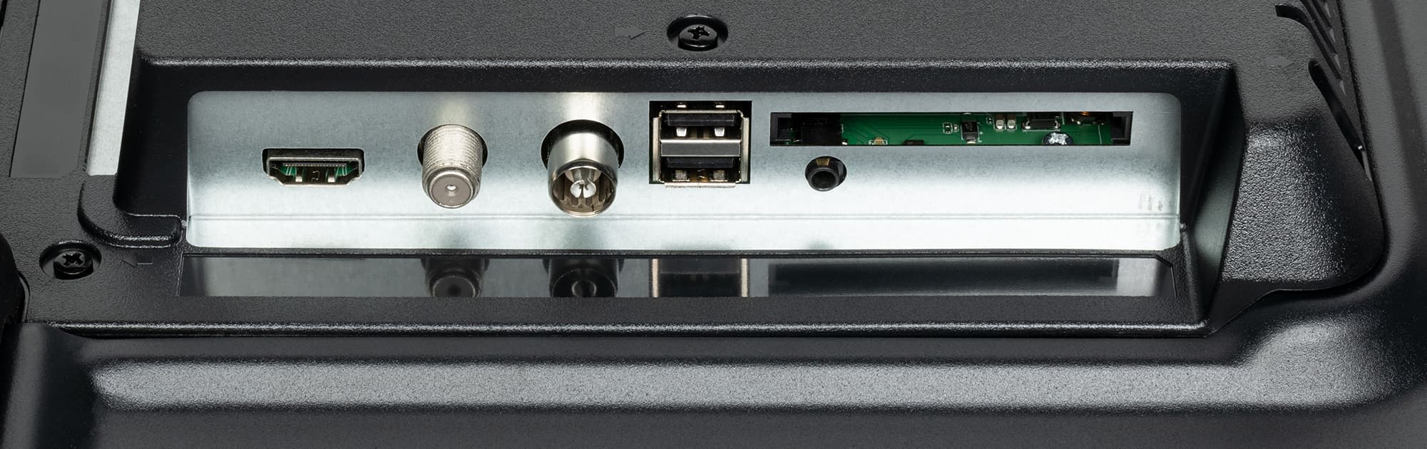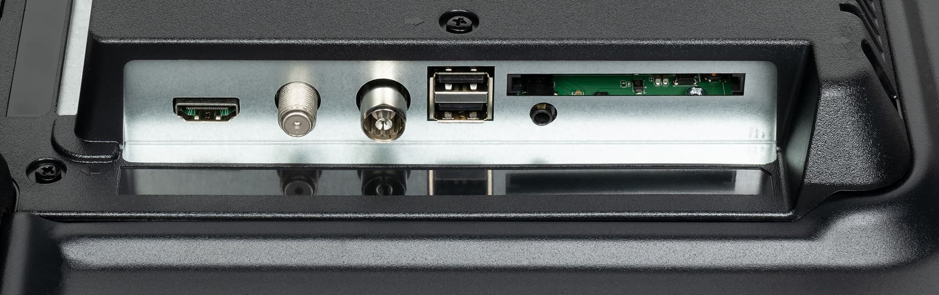 Таблица с характеристиками в начале статьи дает представление о коммуникационных возможностях телевизора. Большинство разъемов полноразмерные и размещены более-менее свободно. Исключениями являются сдвоенные порты USB — две пухлые флешки без использования удлинителя в них уже не вставишь.