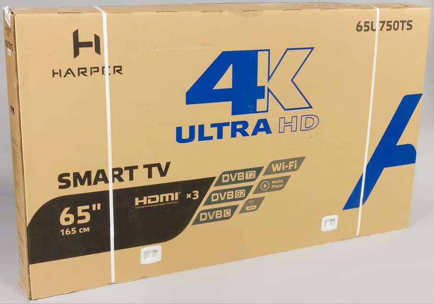 Harper 65U750TS — один из самых дешевых телевизоров с большим 65-дюймовым экраном, доступных на российском рынке. Без компромиссов этого не достичь — в частности, в матрице каждый второй пиксель вместо триады из красного, зеленого и синего субпикселей заменен на один белый. Это точно удешевляет матрицу, но и приводит к артефактам, хорошо видным с того расстояния, с которого различается разрешение 4К. Кроме того, яркость белого поля завышается, что делает цветные участки тусклыми. Производительность платформы невысокая, Wi-Fi однодиапазонный и небыстрый, звук качеством весьма средний и т. д. Впрочем, если основным требованием будет большая картинка за недорого, то данный ТВ вполне можно рассматривать в качестве варианта на приобретение.