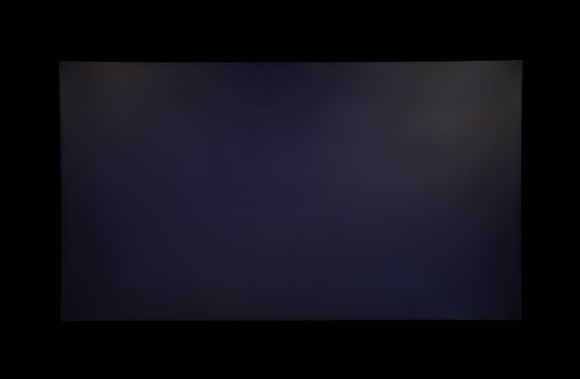 Аппаратные измерения показали приемлемую равномерность всех трех характеристик. Контрастность для данного типа матриц по современным меркам типичная. На черном поле можно заметить некоторую вариацию засветки по площади экрана. Впрочем, на фотографии ниже основная неравномерность (более темный центр) вызвана тем, что фотоаппарат был относительно близко к экрану, а контрастность снижается при взгляде под углом: