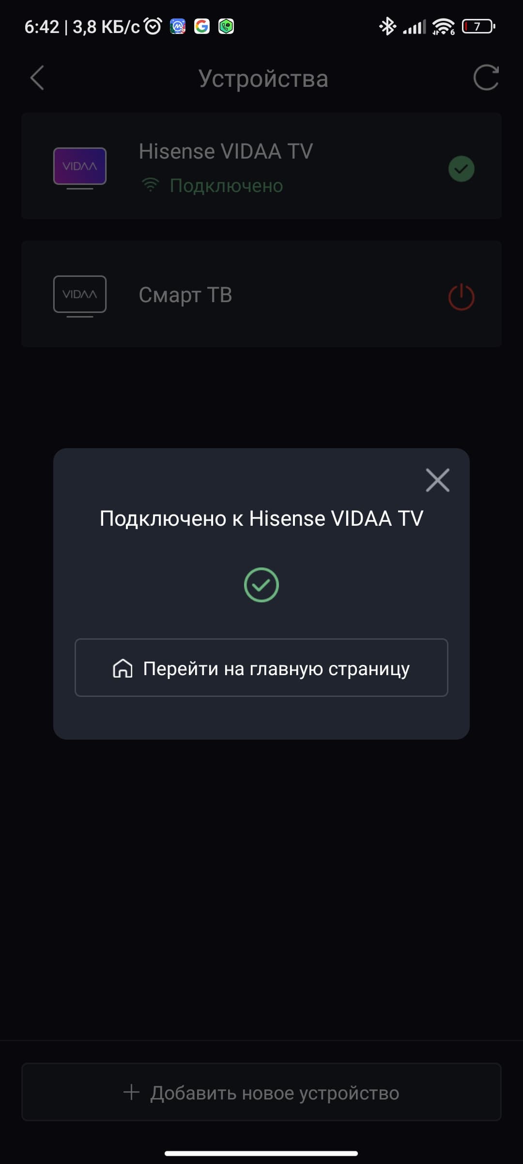 Телевизором можно управлять посредством мобильного устройства с помощью фирменного приложения Vidaa Smart TV для Android и iOS. Для этого телевизор и мобильное устройство должны находиться в одной Wi-Fi-сети.