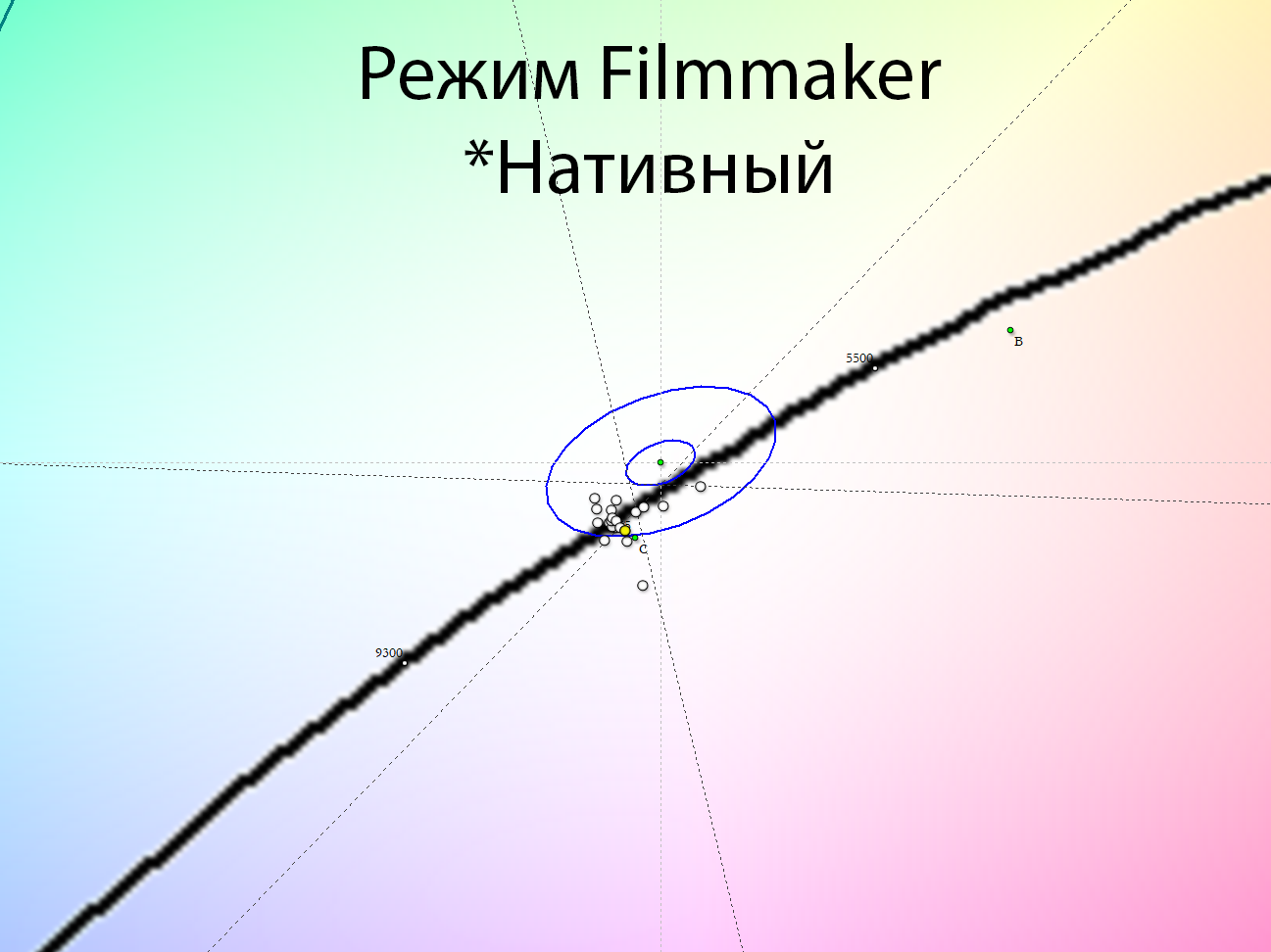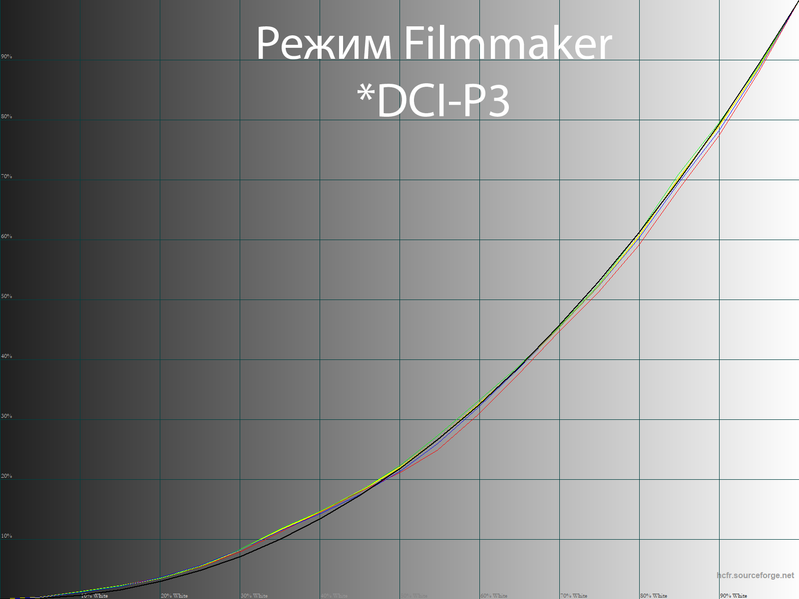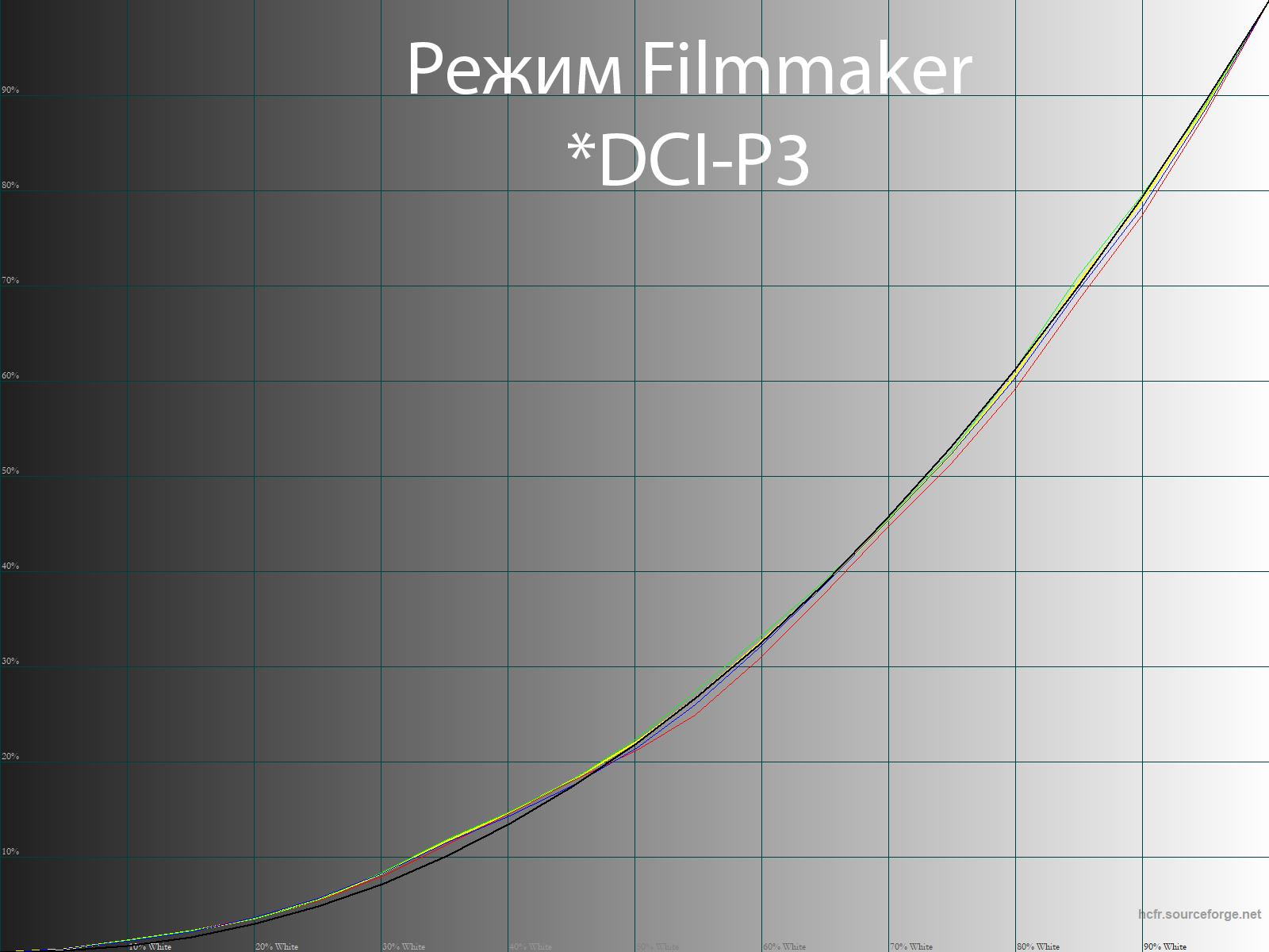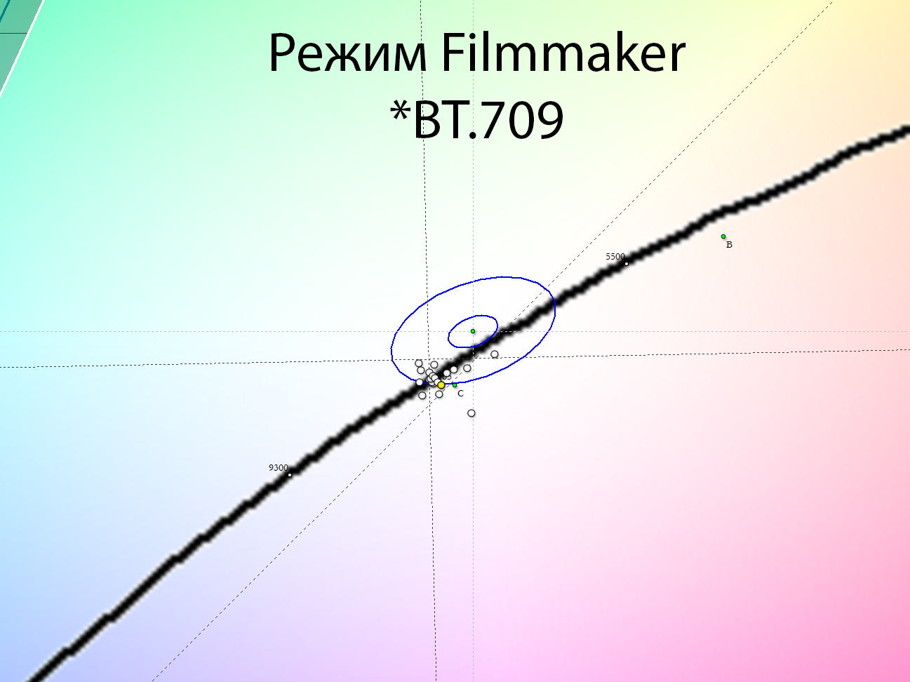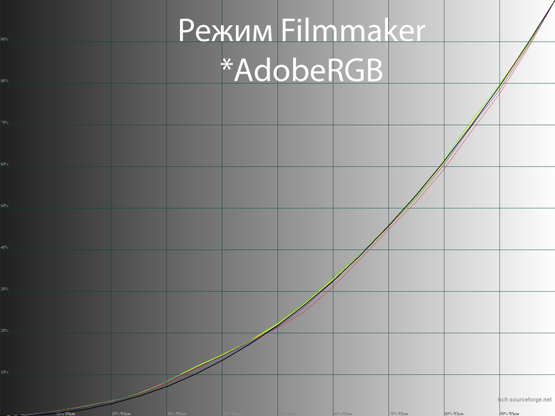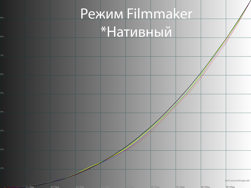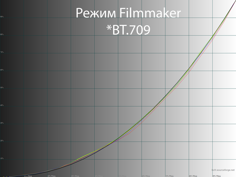 Что же касается разницы между подрежимами Filmmaker с разными цветовыми гаммами, то на кривые, как показали проведенные измерения, это большого влияния не оказывает — результаты крайне схожи.