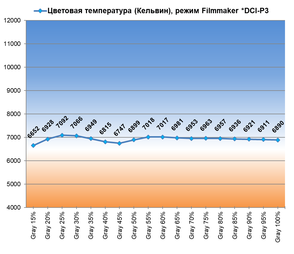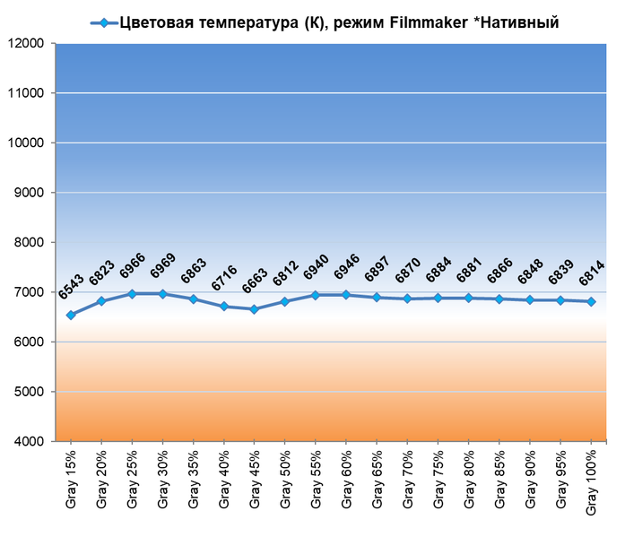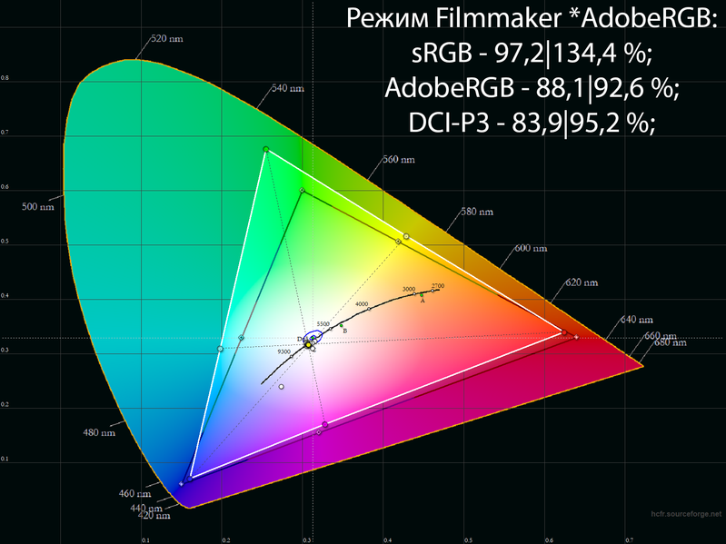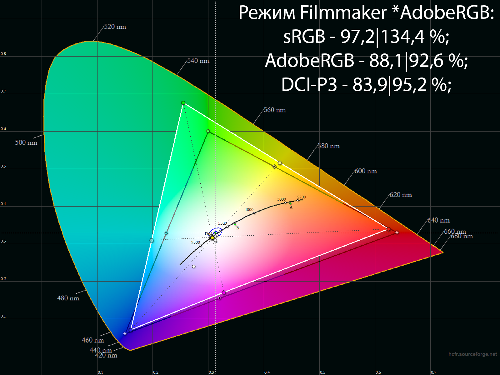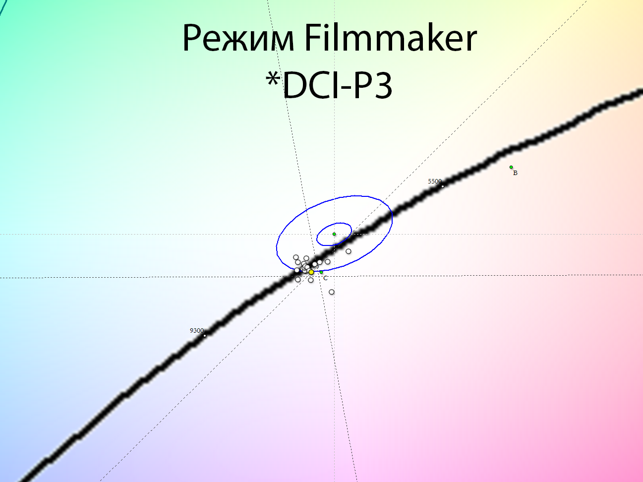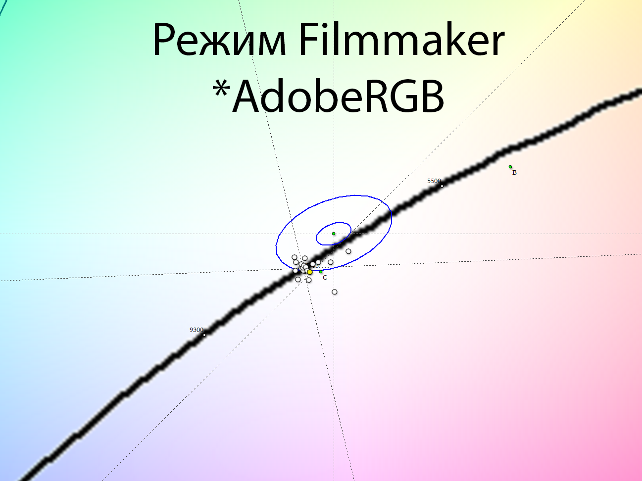 Что же касается разницы между подрежимами Filmmaker с разными цветовыми гаммами, то на кривые, как показали проведенные измерения, это большого влияния не оказывает — результаты крайне схожи.