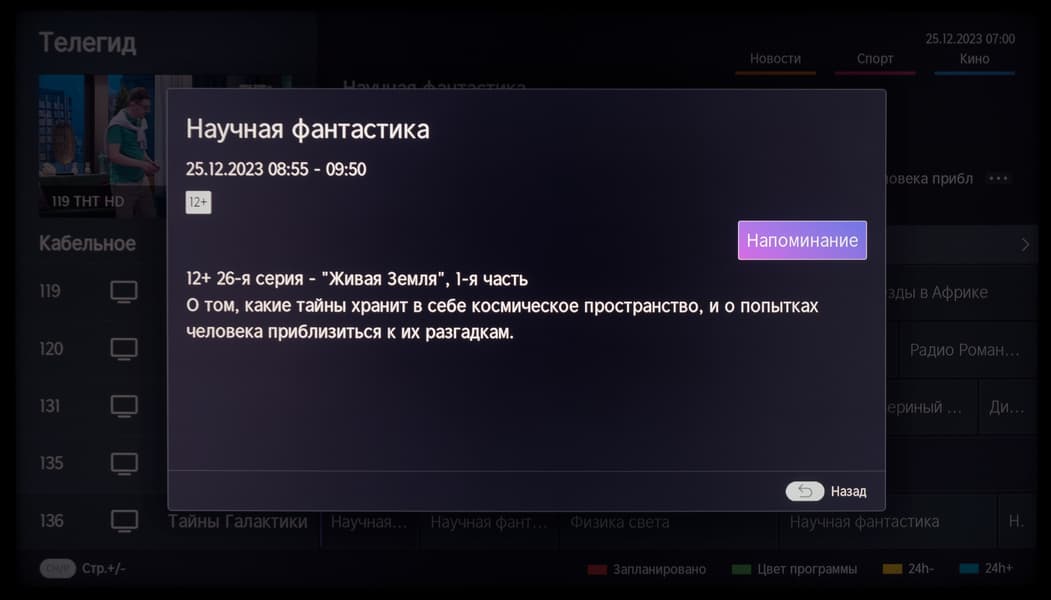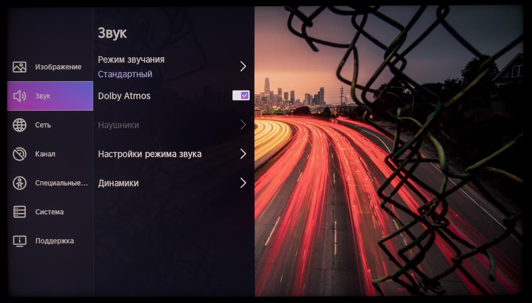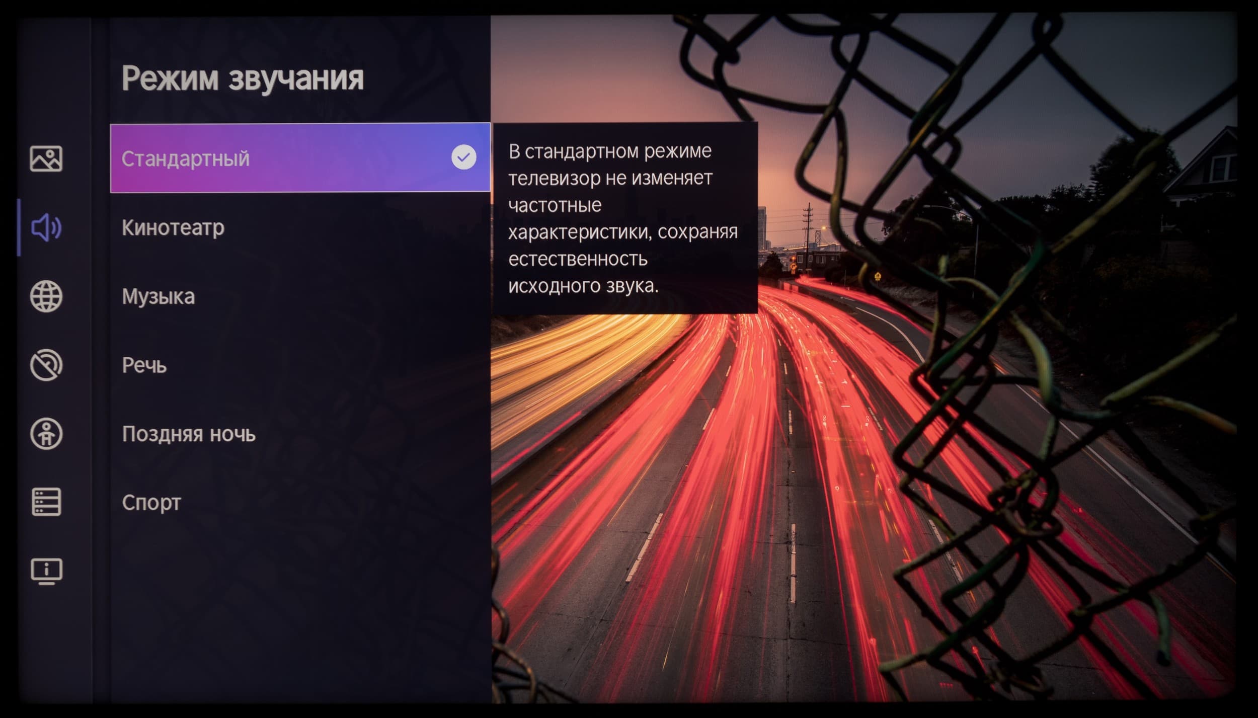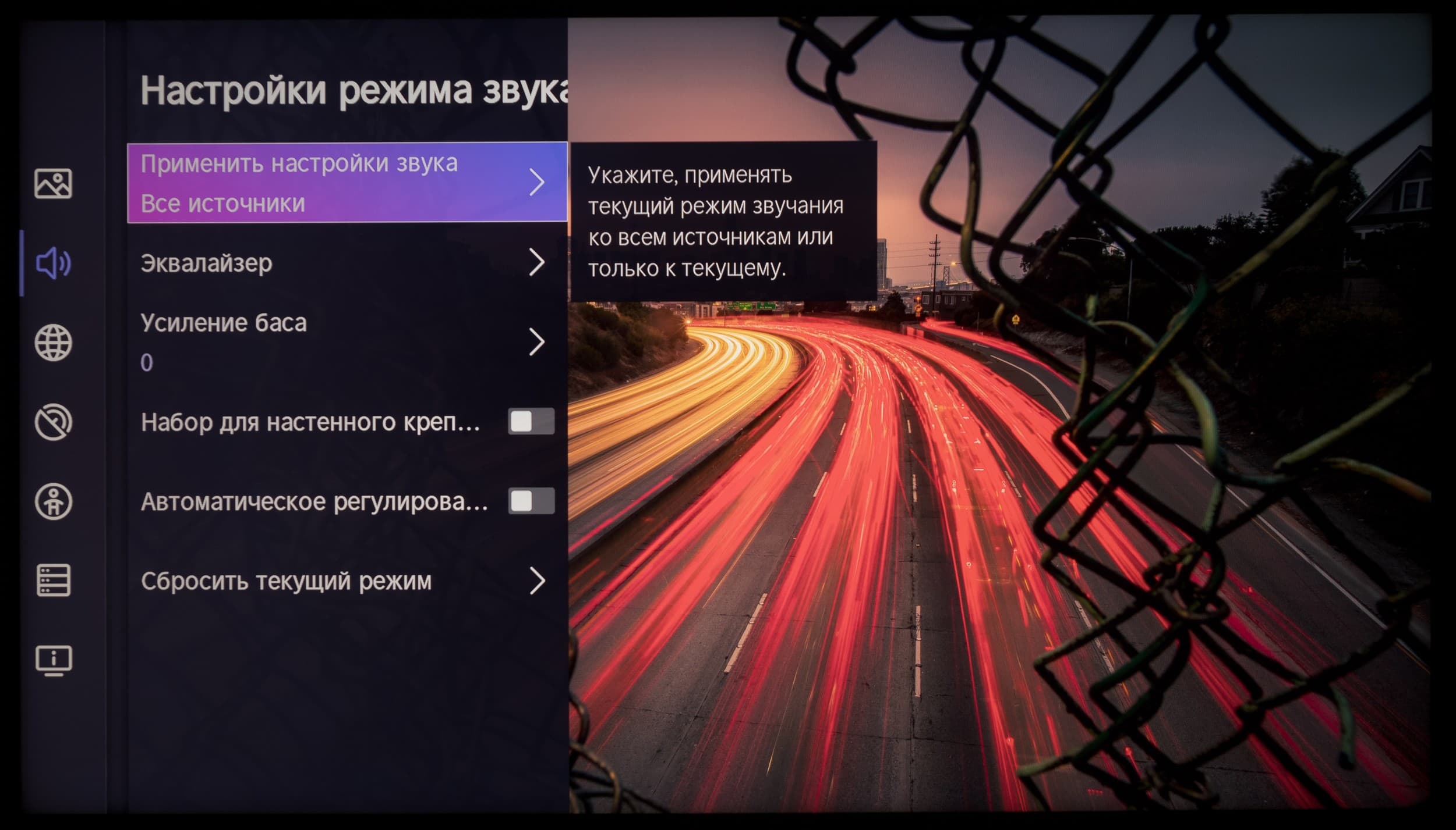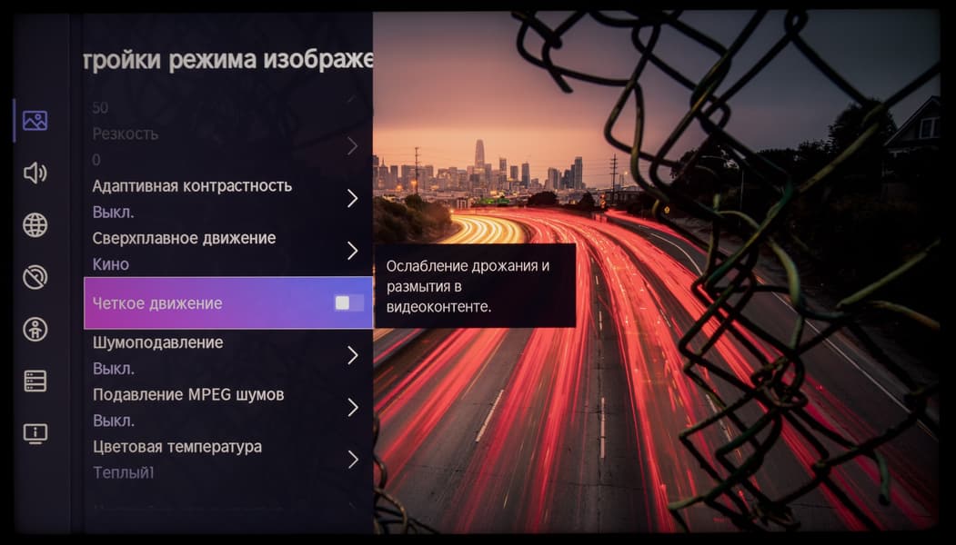 У телевизора 55U8KQ есть функция, повышающая качество картинки во время показа динамических сцен, в пользовательском меню устройства ей дали маркетинговое название «Четкое движение».