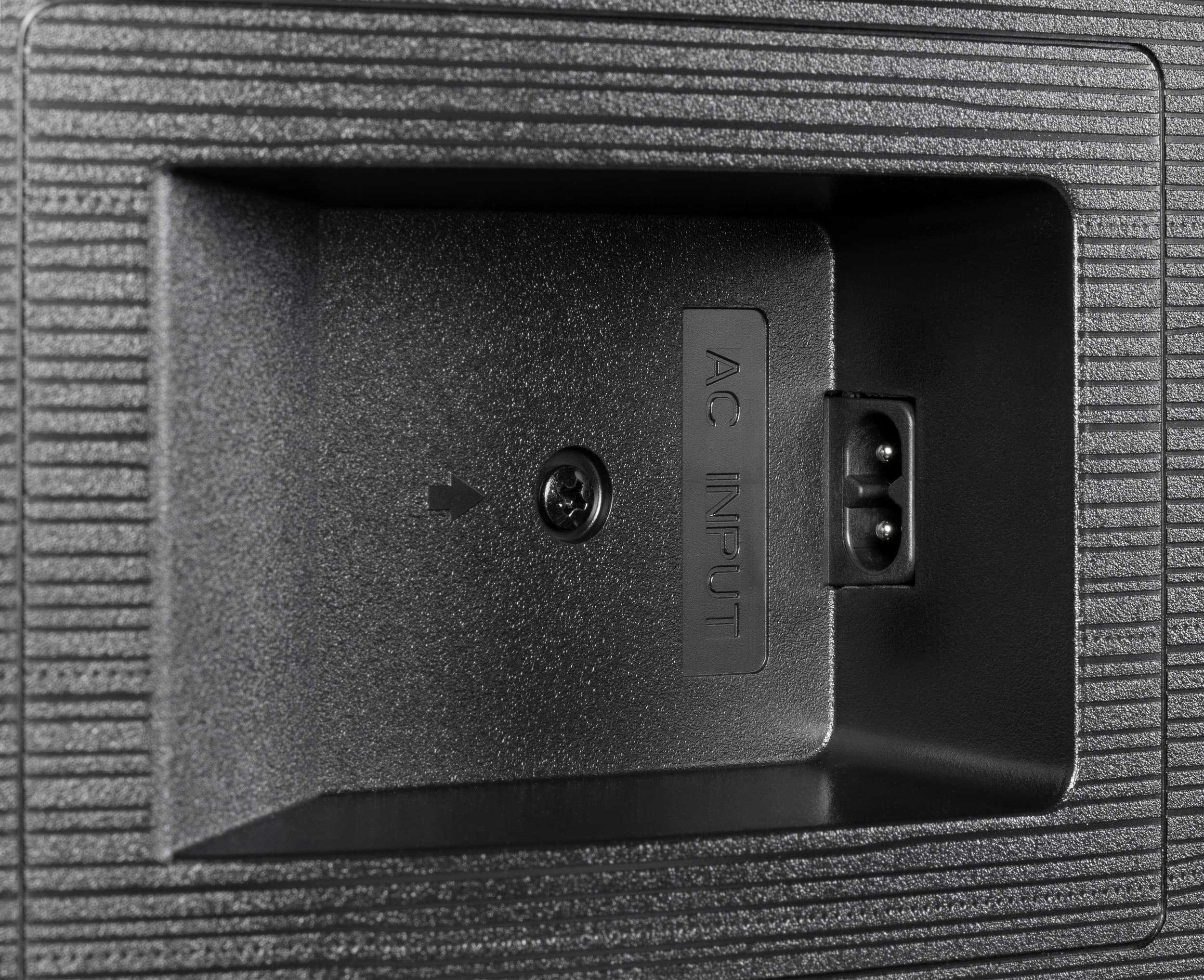Большинство разъемов стандартные, полноразмерные и размещены более-менее свободно. Исключение — разъем для ввода композитного видеосигнала и стереозвука в аналоговом виде, который представляет собой гнездо для четырехконтактного миниджека. Соответствующего переходника на 3 RCA в комплекте поставки нет. Кабель питания отсоединяемый, его длина 1,5 м.