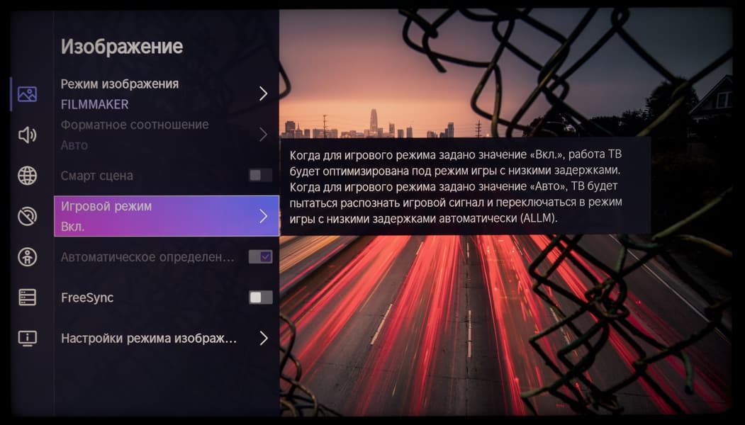 Для очень динамичных игр лучше использовать вывод с частотой 120 Гц, в котором даже без включения игрового режима задержка очень низкая. Прекрасный результат.