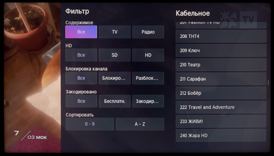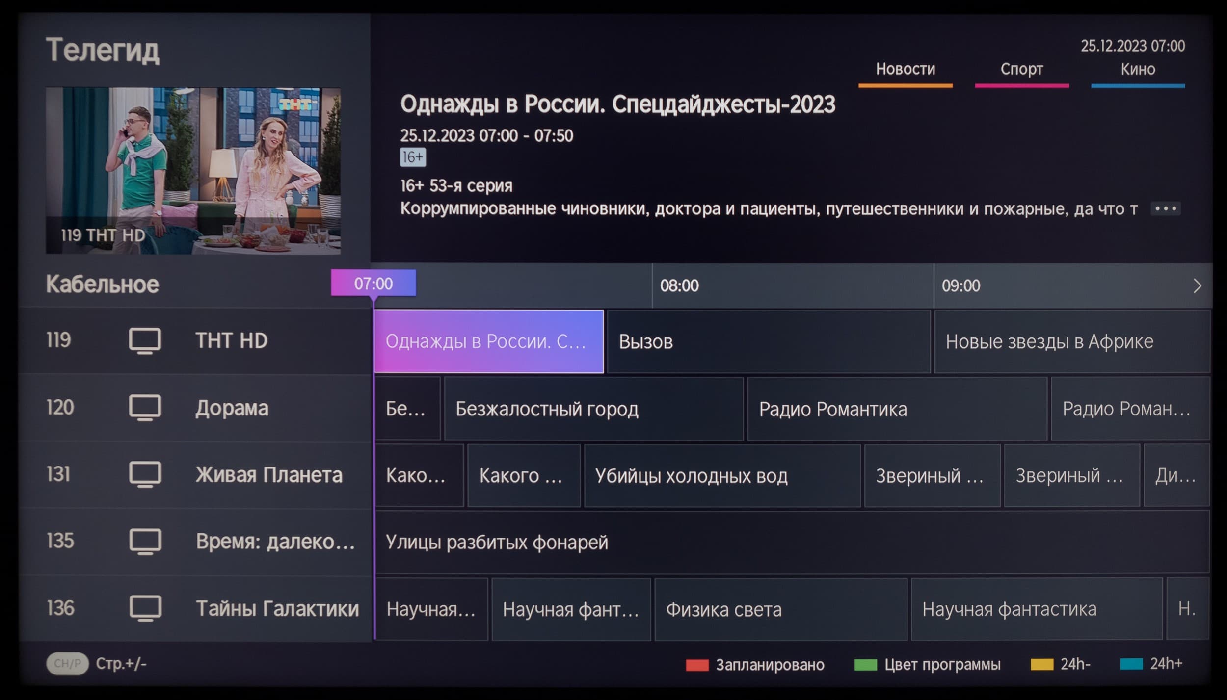 В связи с этим так называемый кристаллический эффект фактически отсутствует. Резкость достаточная, проблем с выводом тонких линий и текстовых полей не отмечено. Дополнительная корректировка резкости (на программном уровне ТВ) через меню телевизора не требуется (не стоит подниматься выше 10 пунктов, а лучше снизить значение до 0), но может быть выполнена в соответствии с особыми запросами конечного потребителя. Тут, как говорится, на вкус и цвет.