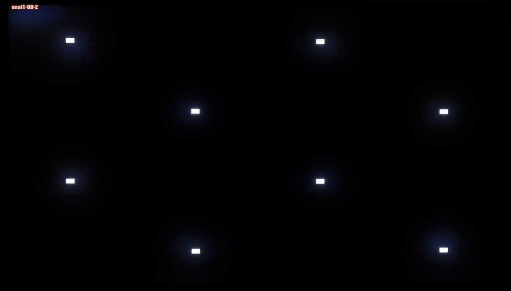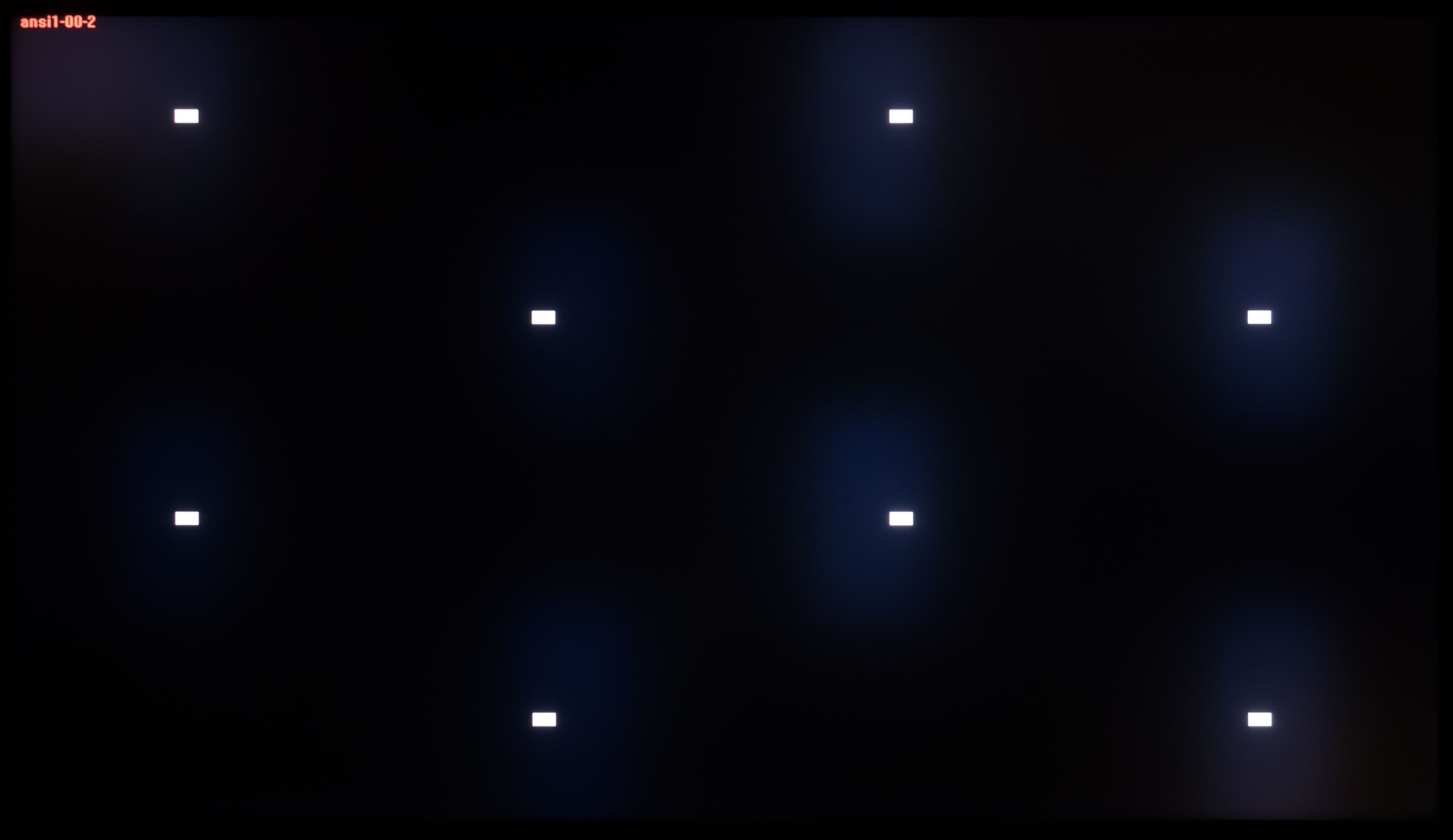 На белом поле видна характерная неравномерность подсветки, которая была вполне ожидаема от телевизора с диагональю 55 дюймов и использованием огромного количества светодиодных источников подсветки Mini-LED, расположившихся по всей поверхности матрицы. С другой же стороны, учитывая использование тысяч Mini-LED-источников для создания 672 зон подсветки, подобную равномерность следует рассматривать, как высокую: отсутствуют явные дефекты рабочей зоны, нет ярко выраженных и отличающихся друг от друга сегментов.