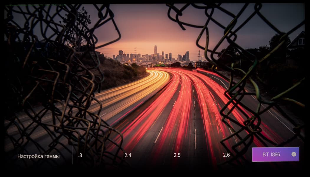 В режиме Filmmaker с любым цветовым пространством по умолчанию выставлена гамма стандарта BT.1886. Как показали наши замеры, это максимально приближенный вариант к популярной гамме 2.2, используемой в случае с ПК, а также для профессиональной работы. В случае же с ТВ установленная производителем гамма увеличивает различимость в глубоких тенях (с точки зрения автора — излишне для *VA-панели) и повышает контрастность во всем остальном диапазоне, что в некоторой степени компенсирует потерю контраста в тенях.