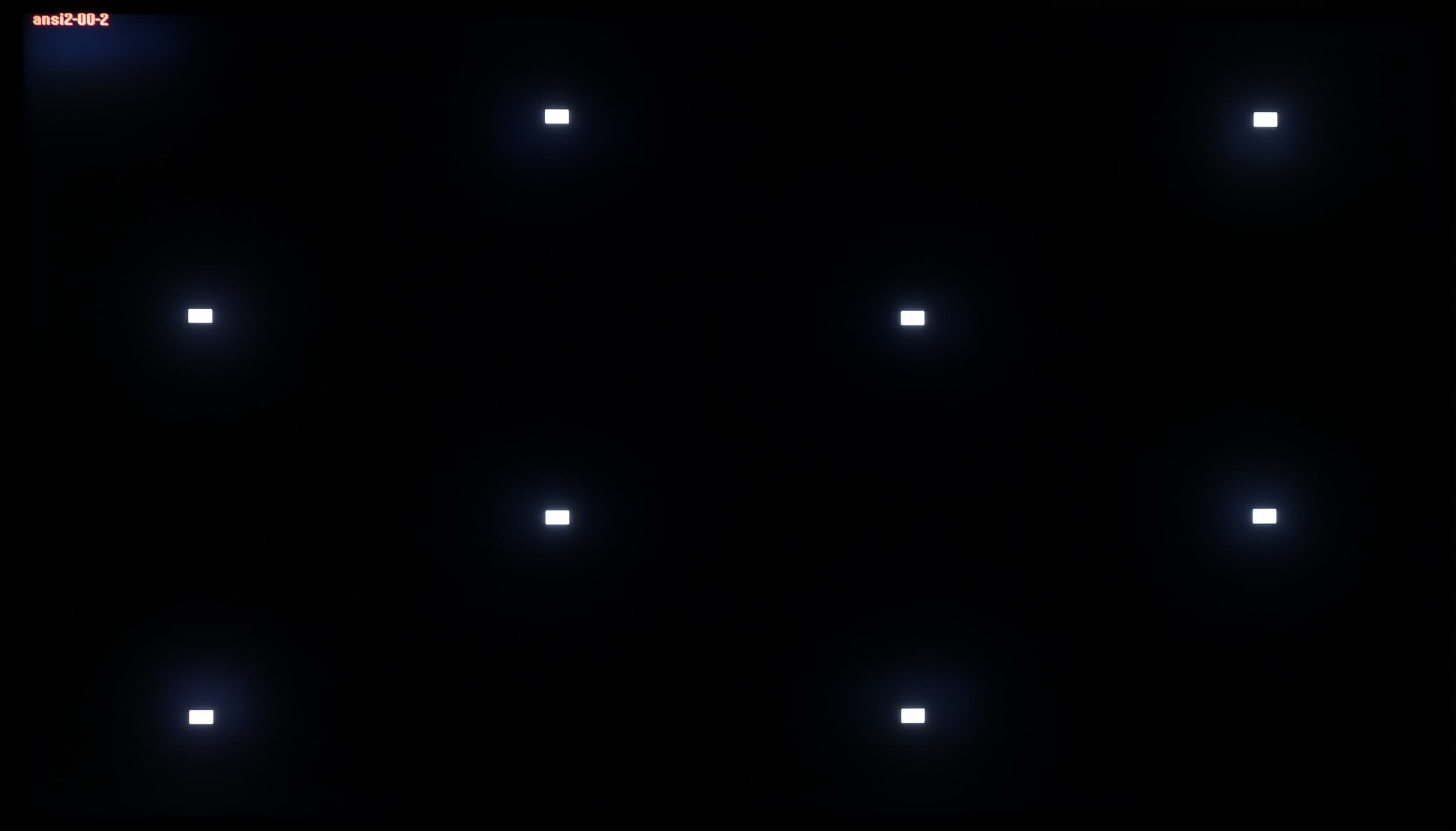 Примерами реальных изображений с подобными артефактами (ореолами) могут быть звездное небо, салют на ночном небе и титры (а также любые небольшие текстовые вставки). Однако процессор телевизора склонен занижать яркость подсветки (благодаря глобальному затемнению) под небольшими яркими объектами (видно в случае примера с разноцветными «треугольниками»), поэтому в идеальных условиях, после зрительной адаптации в устоявшихся условиях внешнего освещения, а также после регулировки яркости подсветки матрицы под эти условия, ореолы могут быть практически незаметны. По крайней мере, именно такого результата добился автор в ходе тестирования 55U8KQ. Телевизор если и не добрался до уровня OLED, то сильно к нему приблизился по визуальному впечатлению от просмотра и сделал большой шаг вперед в сравнении с предшественником в лице 55U8HQ.