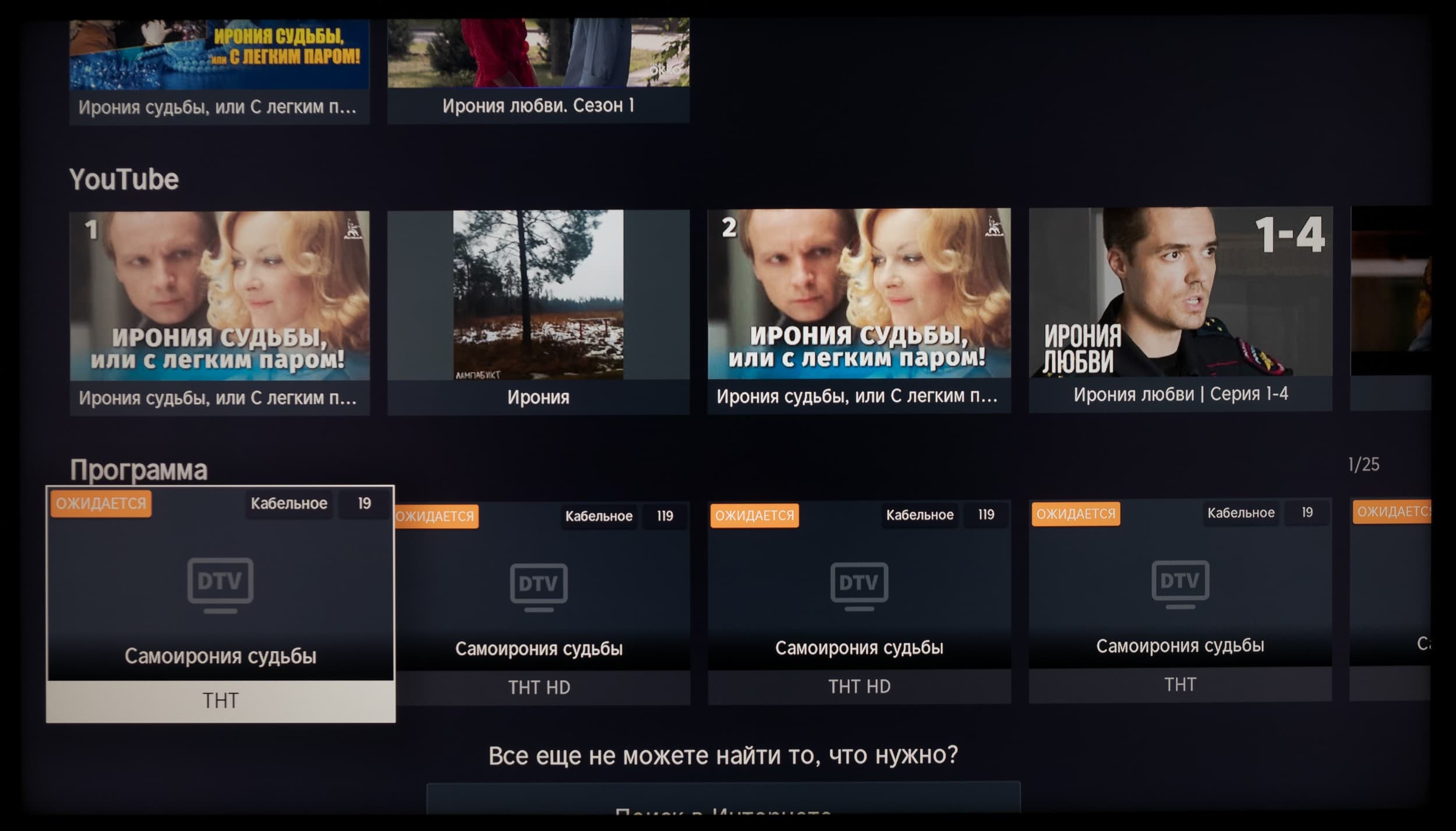 Итак, главная страница интерфейса типична для современных умных телевизоров, среди интерфейсов операционных систем которых всё чаще и чаще наблюдается какая-никакая унификация.