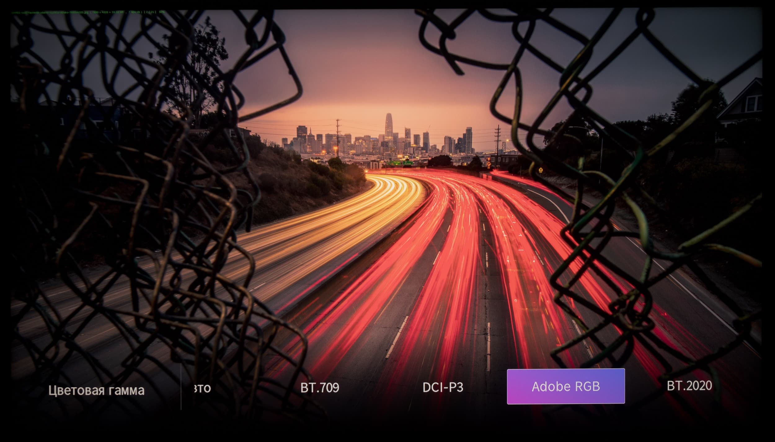 Телевизор Hisense не предоставляет возможности установить автоматическое определение цветовой гаммы (в виде отдельного режима), но делает это самостоятельно при первом подключении к новому источнику (в нашем случае это ПК), устанавливая пространство BT.709 (оно же sRGB/Rec.709). Также в сравнении с предшественником U8HQ увеличено количество дополнительных вариантов эмуляции: AdobeRGB, DCI-P3, BT.2020. Каждый из них телевизор прекрасно понимает (хотя и не раскрывает на все 100%) и переключается в соответствующий режим при наличии необходимых данных в источнике.