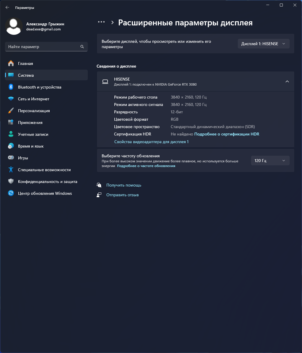 | 3840×2160/120 Гц/игровой режим выключен | 11 мс |