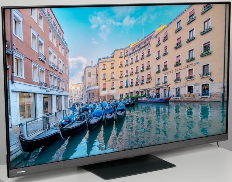 Телевизор Hisense 55U8KQ оснащен *VA-подобной матрицей, что снижает его стабильность изображения по площади матрицы и ухудшает углы обзора на фоне предшественника 55U8HQ с IPS-панелью. Впрочем, как оказалось, разница не такая уж большая, а в условиях просмотра примерно с одной точки 1—3 зрителями проблем возникнуть не должно.