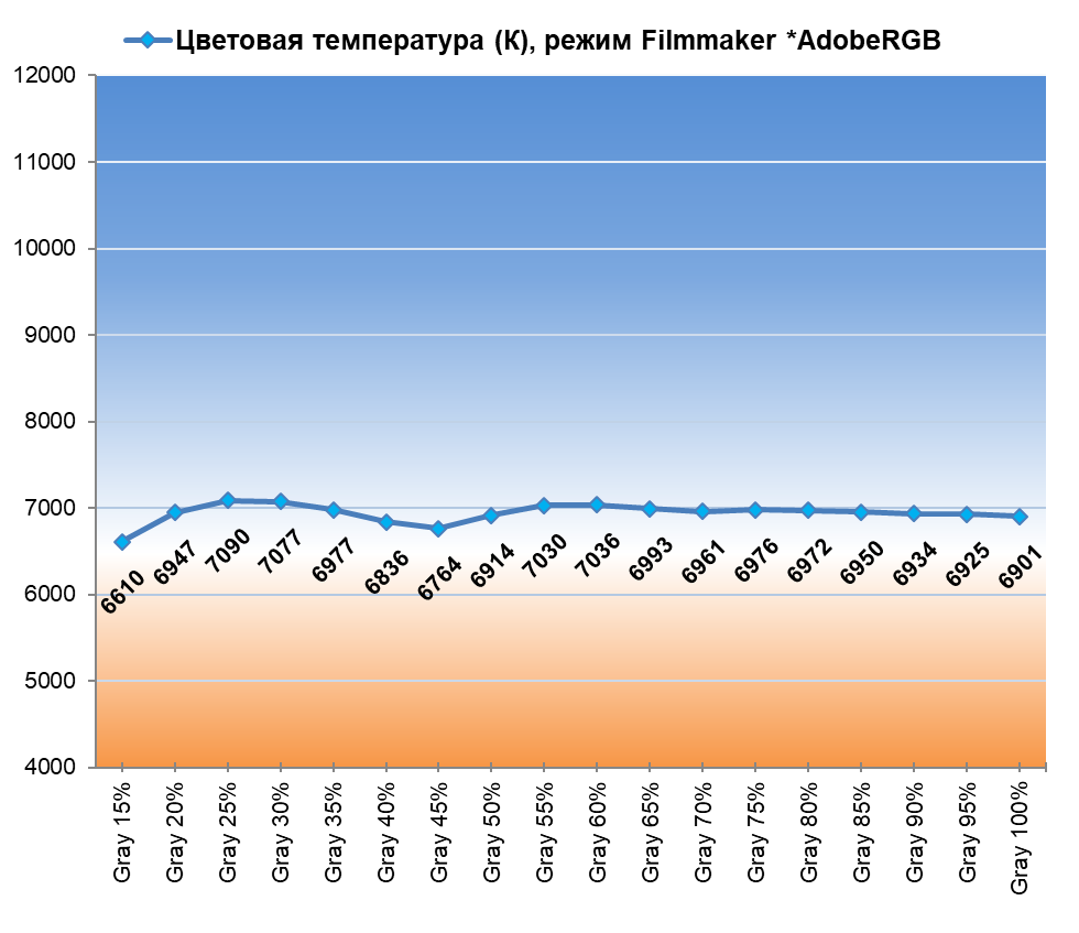Но, к сожалению, в данном случае наблюдаются проблемы с установкой точки белого и балансом ЦТ оттенков серого, а также с его стабильностью — она довольно низкая.
