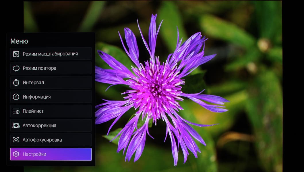 Меню с настройками проектора достаточно крупное, надписи в нем читаемые.
