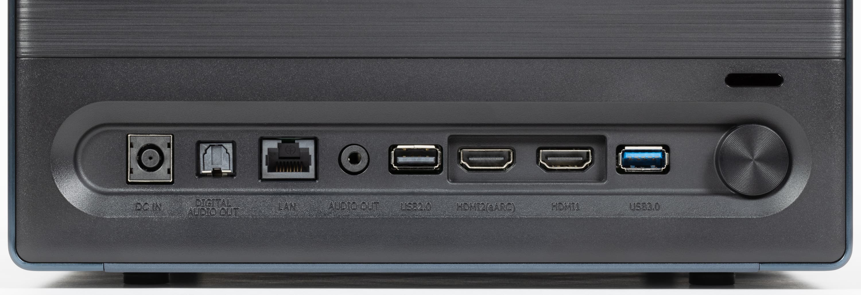 Второй разъем HDMI поддерживает обратную передачу звука (eARC). Дополнительно к eARC и оптическому выходу звук на внешнее устройство можно передавать по Bluetooth. Для проверки мы успешно подключились к нашей тестовой беспроводной колонке (при этом можно включить и громкоговорители и на проекторе). Сам проектор наоборот можно использовать как внешнюю аудиосистему, подключаемую по Bluetooth, например, к смартфону или планшету, при этом во время воспроизведения можно отключить вывод изображения, но, почему-то, не источник света в проекторе.