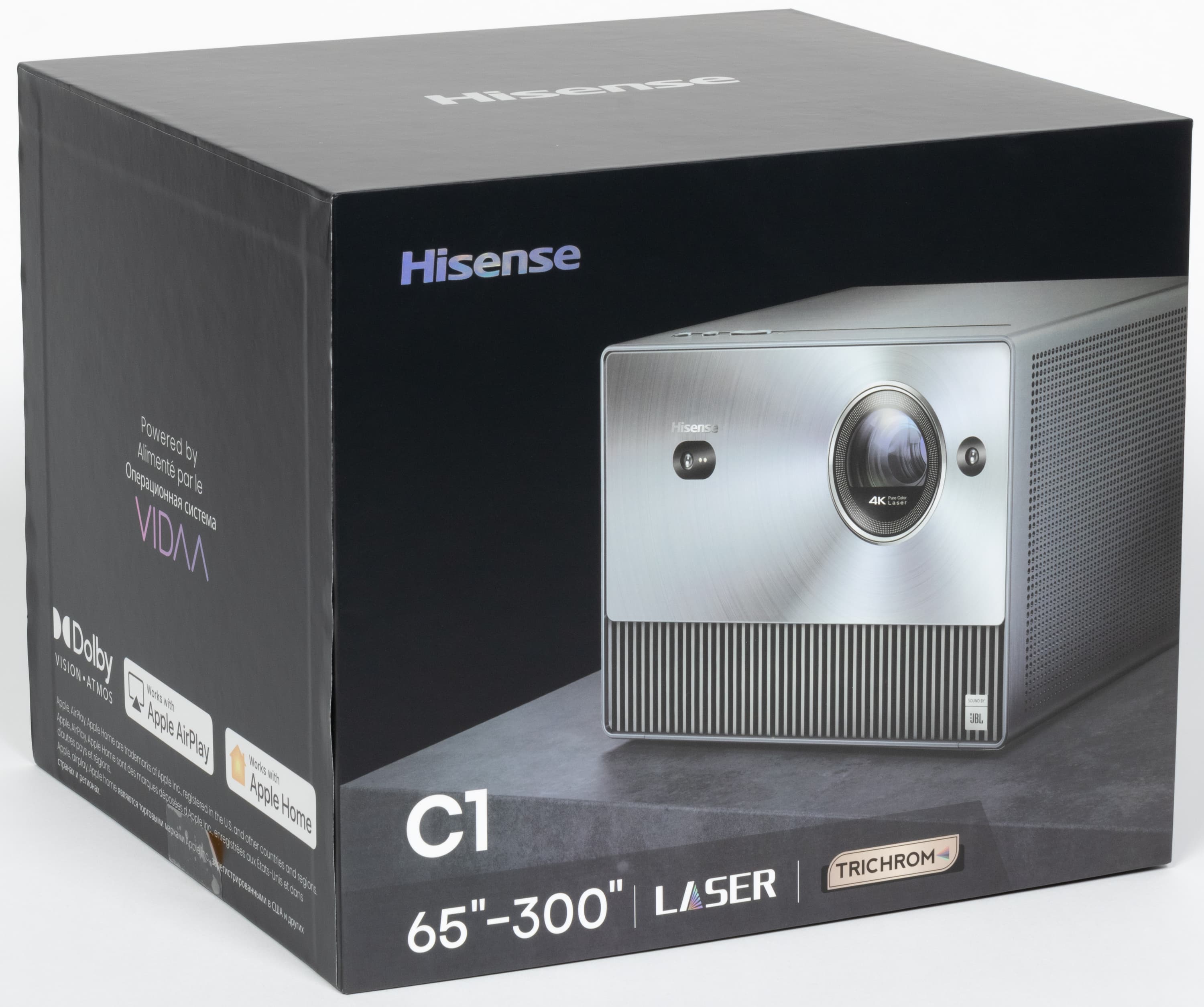 Проектор Hisense C1 представляет собой устройство «всё в одном» и нуждается только в экране. Он оснащен лазерным источником света, времени жизни которого хватит на много лет. Данный проектор можно использовать как для просмотра кино, так и для развлечений, менее требовательных к качеству изображения. В случае кино нужно обеспечить хорошее затемнение и выбрать профиль с правильным цветовым балансом. А, например, для просмотра спортивных передач в компании или для игры во что-нибудь не очень динамичное немного света в помещении можно оставить, а на проекторе выбрать профиль с яркой картинкой. Далее списками: