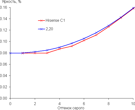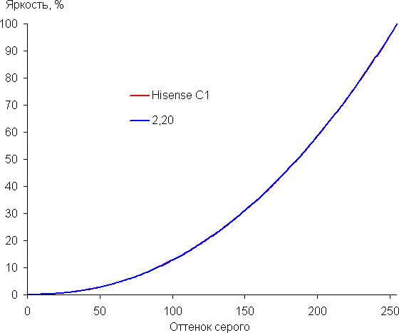 Аппроксимация полученной гамма-кривой дала значение показателя 2,20, что равно стандартному значению 2,2, а реальная гамма-кривая мало отклоняется от аппроксимирующей функции: