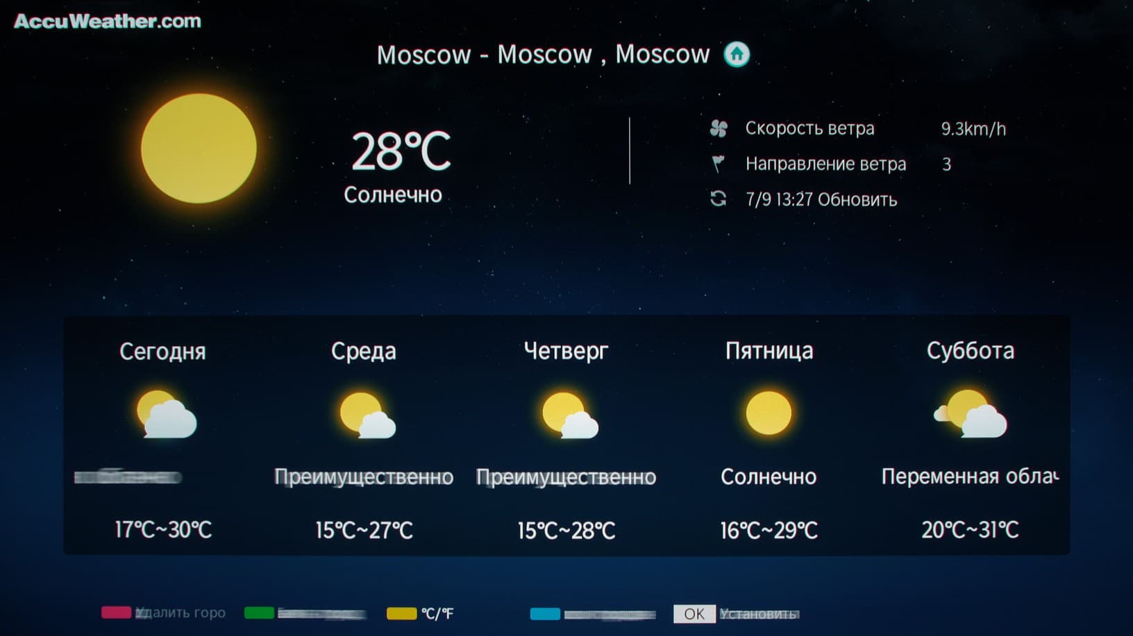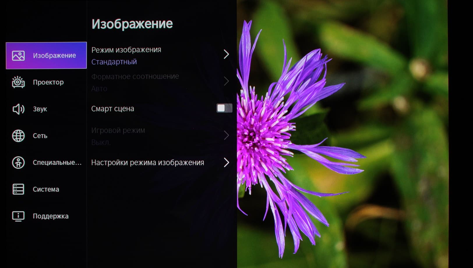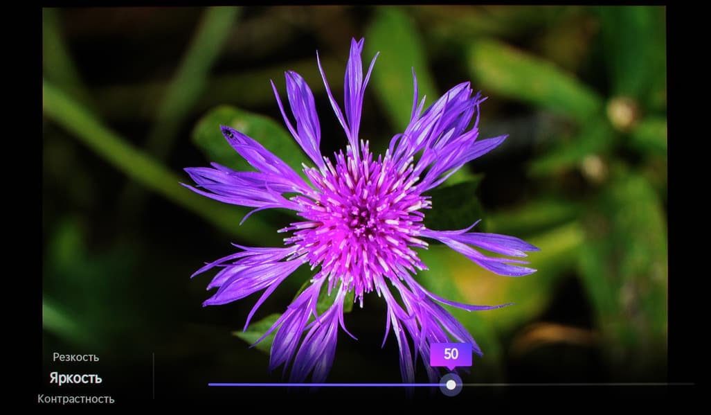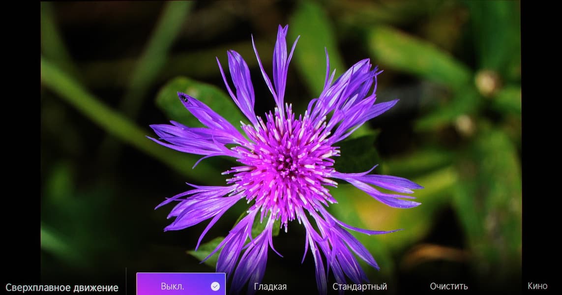 Есть функция вставки промежуточных кадров. Ее качество очень хорошее. В большинстве случаев промежуточные кадры рассчитываются правильно с небольшим количеством малозаметных артефактов и с высокой четкостью. «Желе» вокруг объектов в движении выражено слабо, в случае быстрых и сложных движений заднего фона он сохраняет хорошую детализацию. Вставка кадров работает для частот кадров от 24 до 50 Гц и до разрешения 4К включительно. Пользователь может настроить работу этой функции под свои требования, или, разумеется, отключить ее совсем для просмотра кино без вмешательства умной электроники.