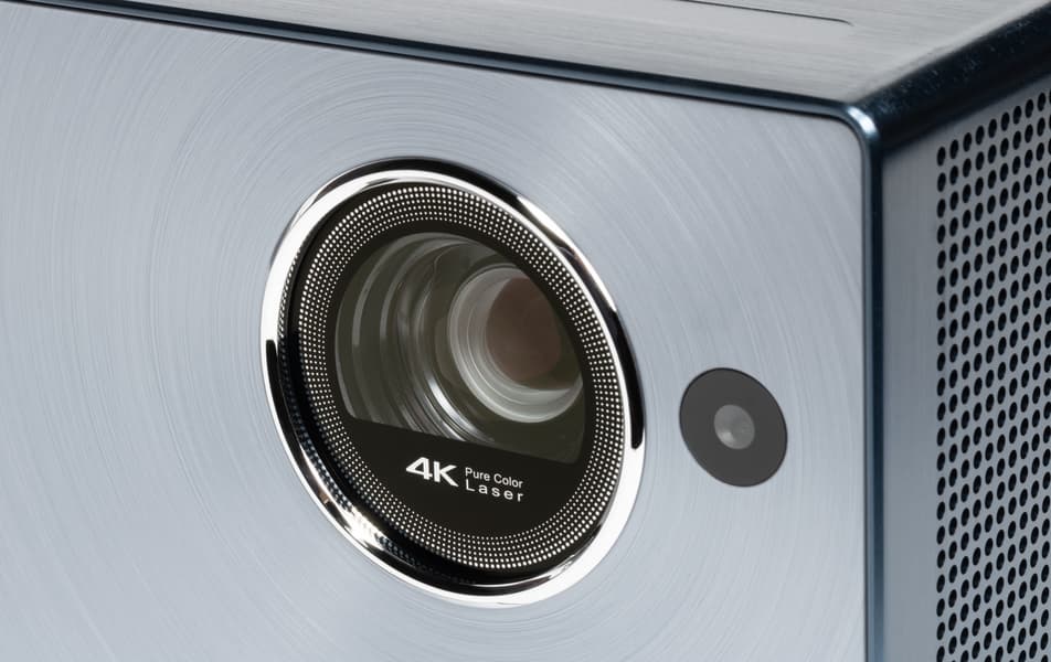 Дизайн типичен для не короткофокусных проекторов со встроенной акустической системой — это кубообразная форма. Единая деталь корпуса, изготовленная из алюминиевого сплава, формирует верхнюю и боковые панели и частично заходит на днище. Поверхность этой детали шлифованная, анодированная и имеет темно-синий цвет. Фронтальная и задняя панели, а также большая часть днища изготовлены из пластика.