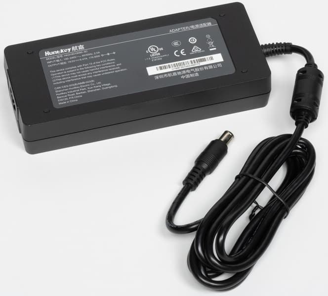 Масса блока питания вместе с кабелями питания — 740 г. Длина низковольтного неотсоединяемого кабеля равна 1,8 м, а сетевого отсоединяемого — 1,5 м.