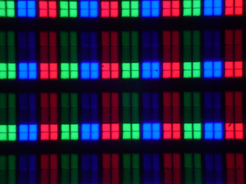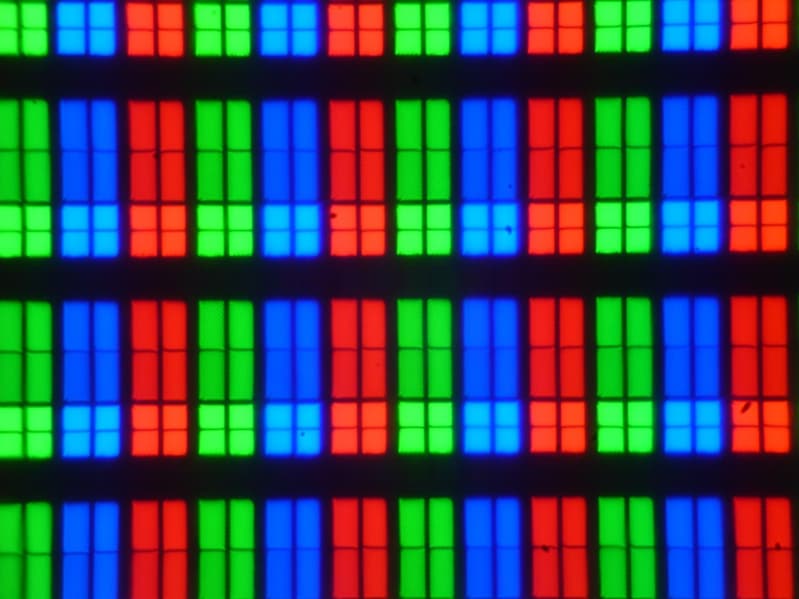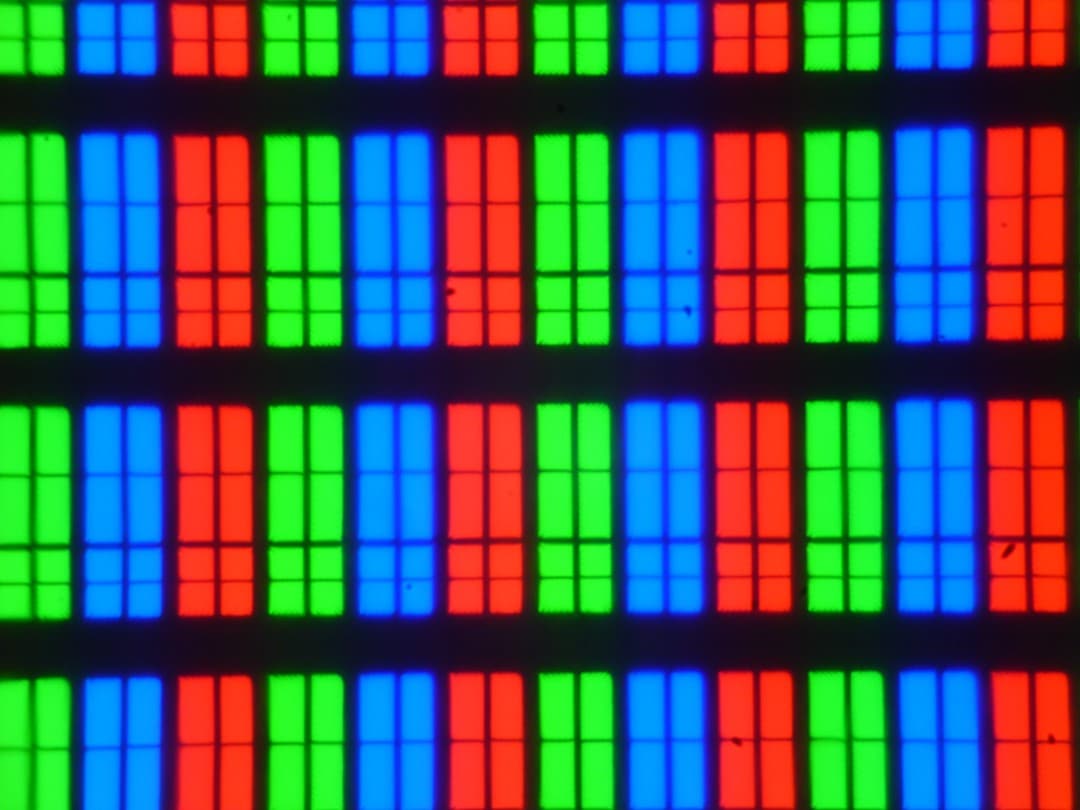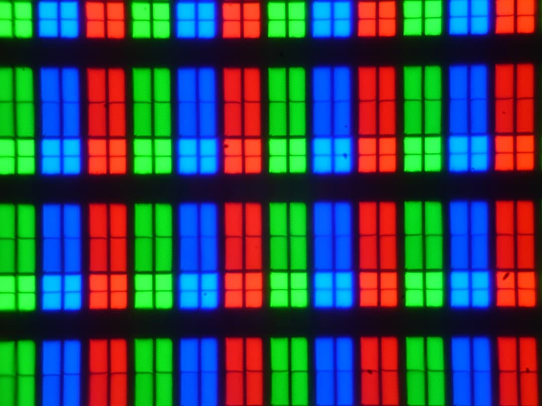 Субпиксели трех цветов (красного, зеленого и синего) поделены на две различающиеся по площади и независимо управляемые области, каждая из которых разделена на четыре участка с доменами в различающейся ориентации. Такое сложное устройство в принципе способно обеспечить широкий динамический диапазон по количеству оттенков, так как с ростом яркости области включаются последовательно, и хорошие углы обзора, чему способствует вариация ориентации ЖК в доменах. Отметим, что никакого видимого «кристаллического эффекта» (микроскопической вариации яркости и оттенка) в данном случае нет.