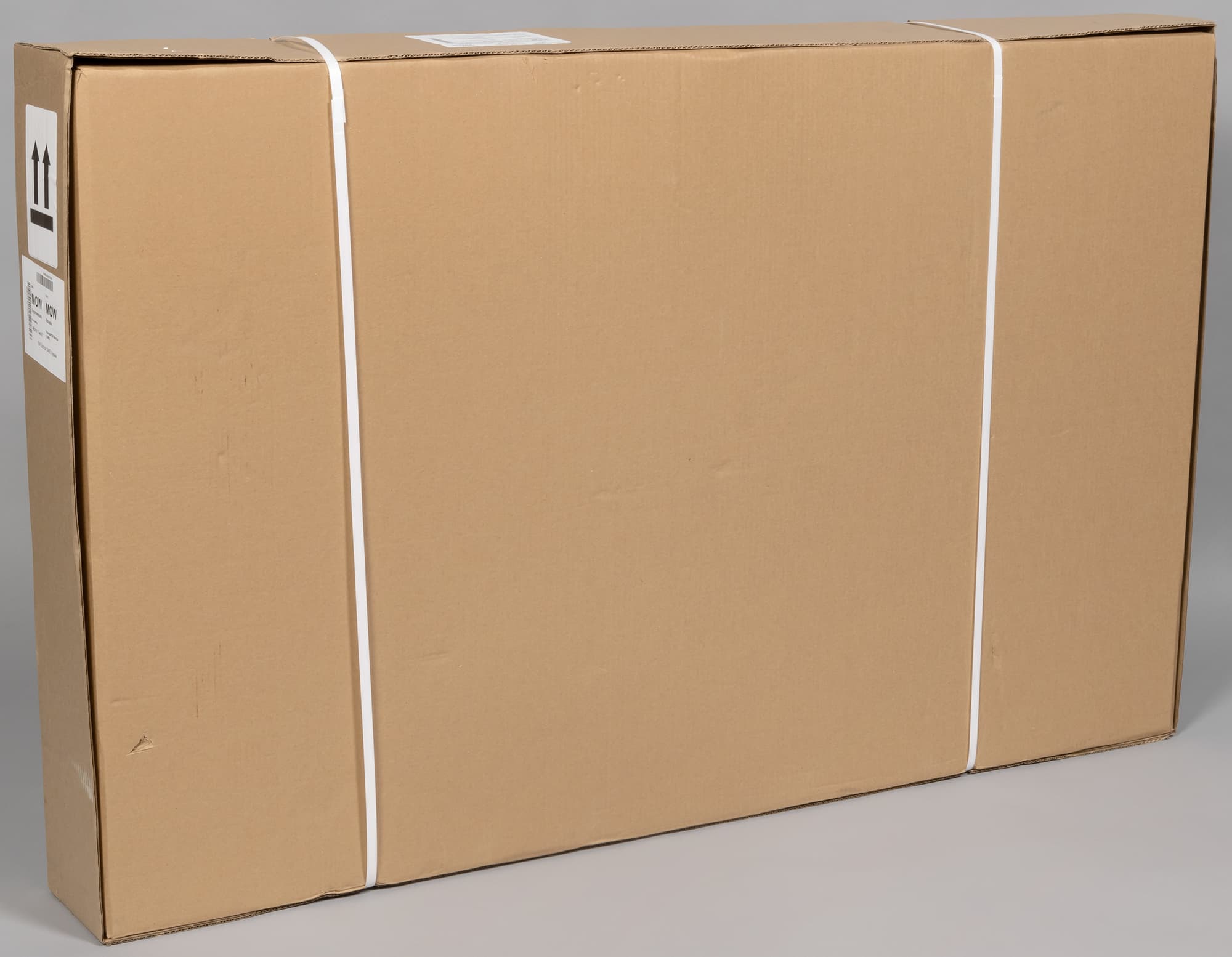 Для переноски в коробке проделаны боковые прорезные ручки. То ли продавец, то ли транспортная компания дополнительно упаковали телевизор с подарком вместе в еще одну коробку уже без ручек, но с пластиковыми стяжками.