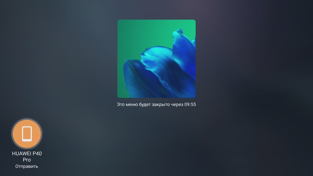 Есть поддержка вывода изображения и звука по Wi-Fi с мобильного устройства на телевизор. Эта функция может запускаться с помощью NFC при соприкосновении смартфона и пульта (такой способ запуска называется OneHop, и работает он «только на некоторых моделях смартфонов Huawei с поддержкой NFC», на Huawei P40 Pro точно). При подключении к телевизору фактическое разрешение выводимого изображения не превышает Full HD. Режимов работы два: вывод альтернативного рабочего стола (Режим рабочего стола) или простое копирование экрана смартфона (режим Телефон). Во втором случае при портретной ориентации экрана смартфона картинка на экране выводится вписанной по высоте и с широкими черными полями по бокам, а при ландшафтной — вписанной по ширине с узкими черными полями сверху и снизу.