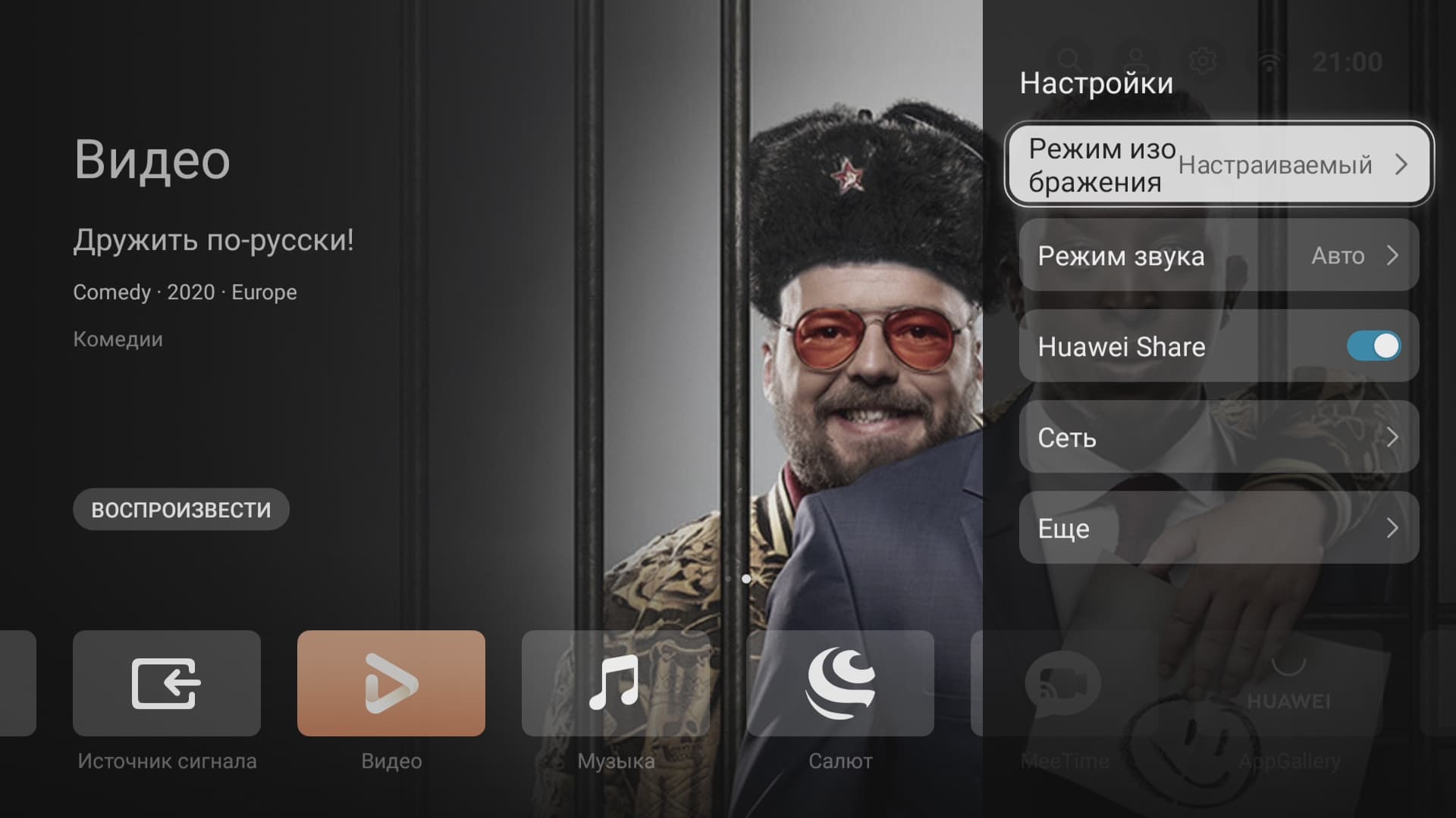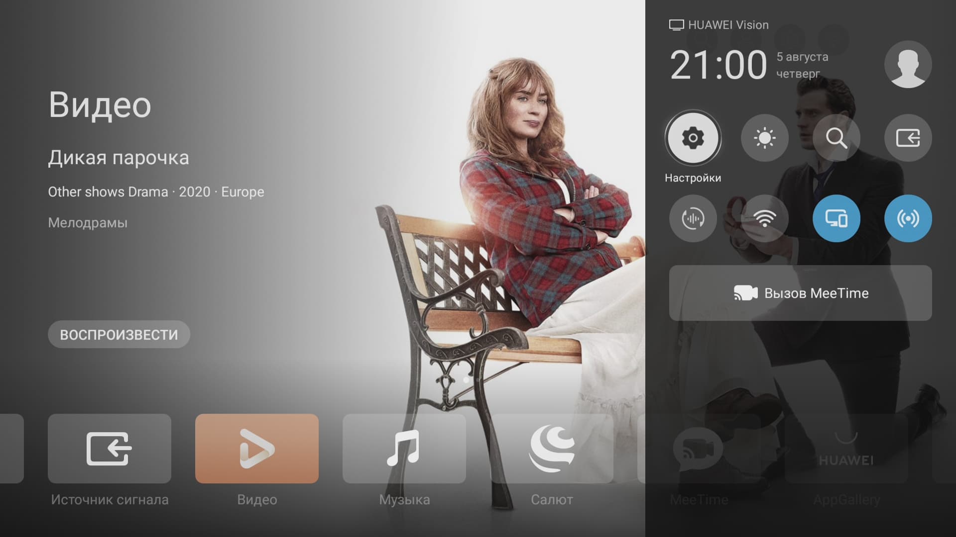 Отметим, что все, с чем взаимодействует пользователь, например, меню с настройками и интерфейс предустановленных приложений, работает шустро. Оболочка системы очень отзывчива к действиям пользователя — согласно субъективным ощущениям в этом плане HarmonyOS превосходит даже чистый Android TV. Впрочем, стоит учитывать и весьма неплохую по меркам телевизоров «железную» составляющую этого умного экрана.