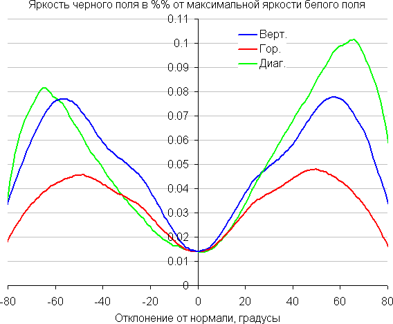| Яркость черного поля | 0,051 кд/м² | −19 | 16 |