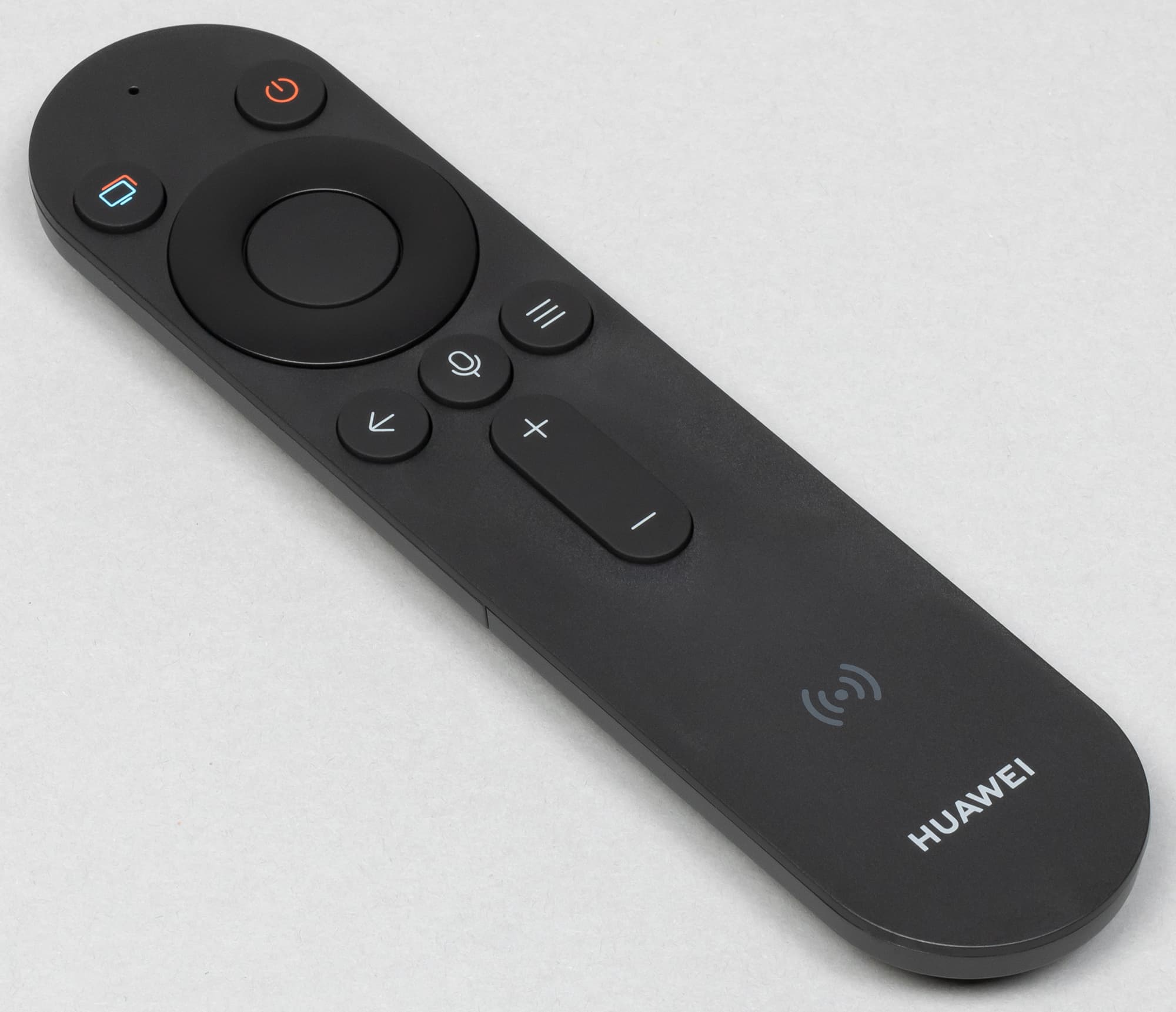 Корпус и кольцевая курсорная кнопка пульта изготовлены из черного пластика с матовой поверхностью. Остальные кнопки — из резиноподобного материала. Обозначения кнопок достаточно контрастные и крупные. Самих кнопок мало, хотелось бы видеть еще кнопки для управления воспроизведением, но хоть нет ненужных кнопок для непосредственного запуска навязанных пользователю программ. Пульт работает по Bluetooth. В передней части пульта есть отверстие микрофона.