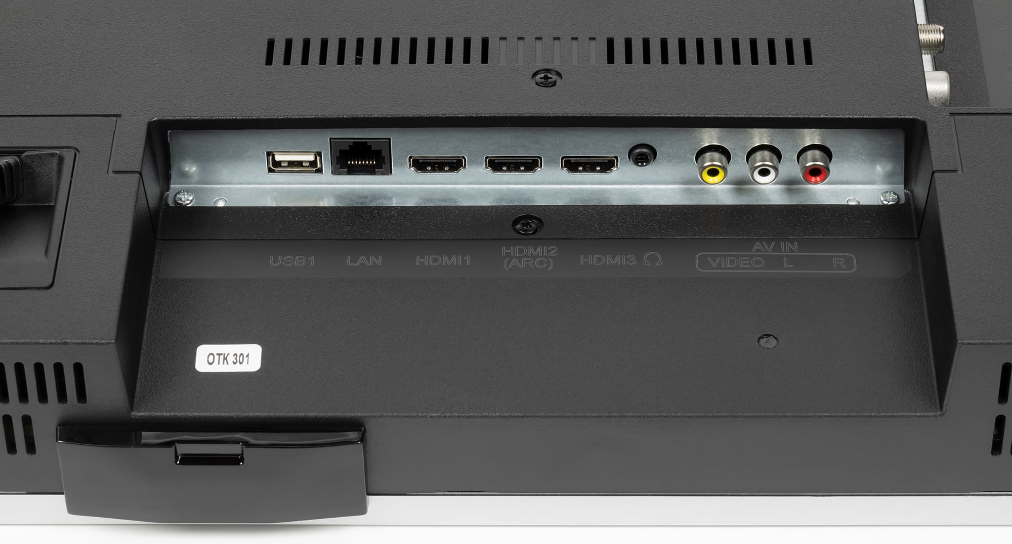 Таблица с характеристиками в начале статьи дает представление о коммуникационных возможностях телевизора. Большинство разъемов полноразмерные и размещены более-менее свободно. Исключением является разъем для ввода компонентного видеосигнала в аналоговом виде, который представляет собой гнездо для четырехконтактного миниджека. Соответствующий переходник на три RCA в комплект поставки не входит. Из всех возможных функций управления по HDMI работает только одна: подключенный по HDMI плеер выключается при выключении телевизора. К телевизору по Bluetooth можно подключить внешнюю акустику или наушники, а также мышь и клавиатуру.