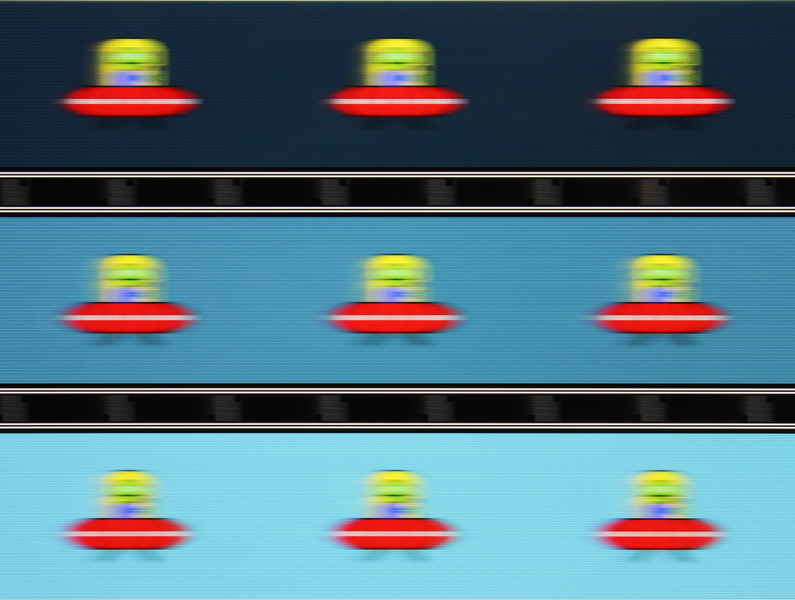 Видно, что четкость двигающегося изображения на этом ТВ заметно ниже, чем в случае с идеальной матрицей.