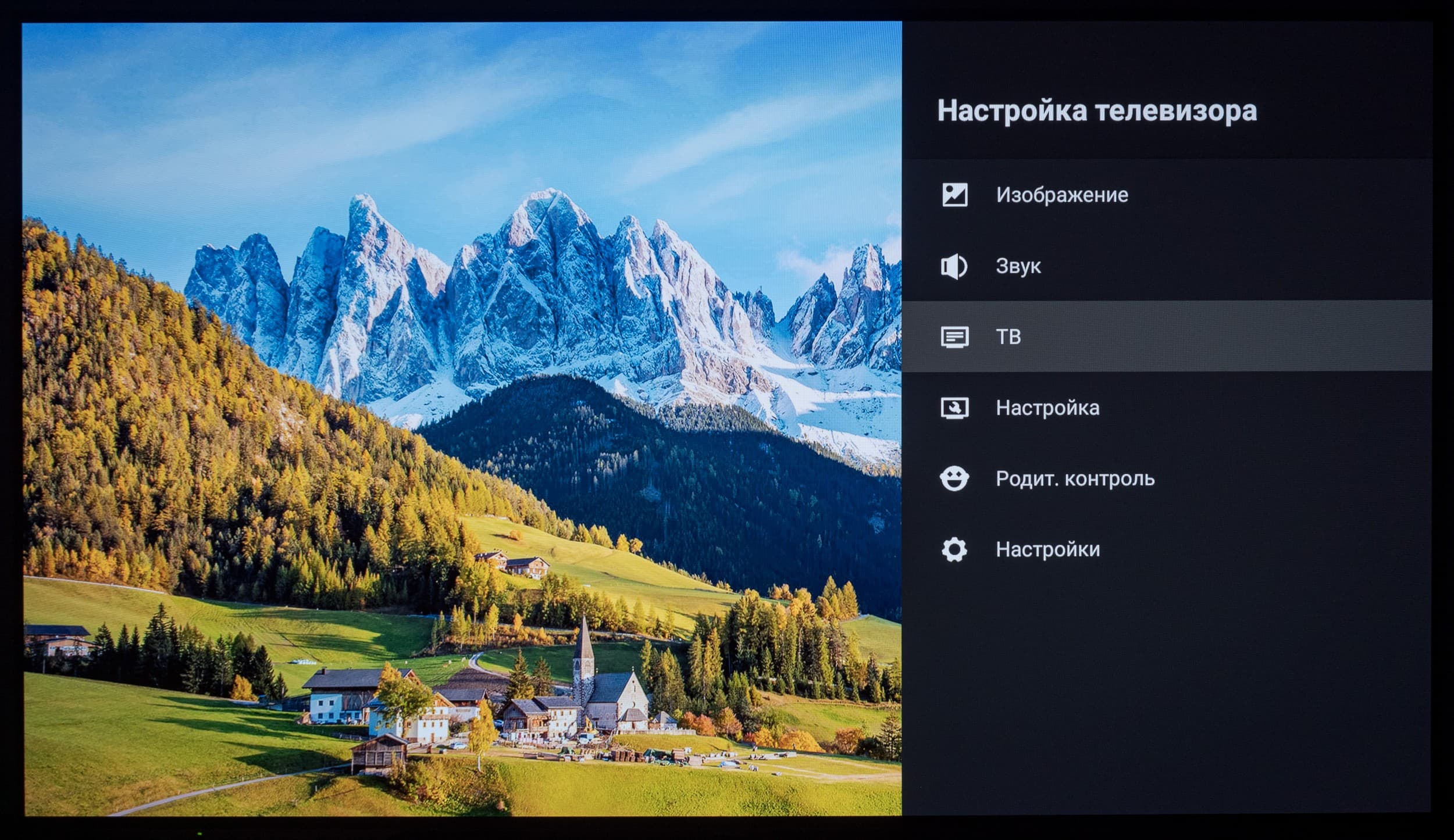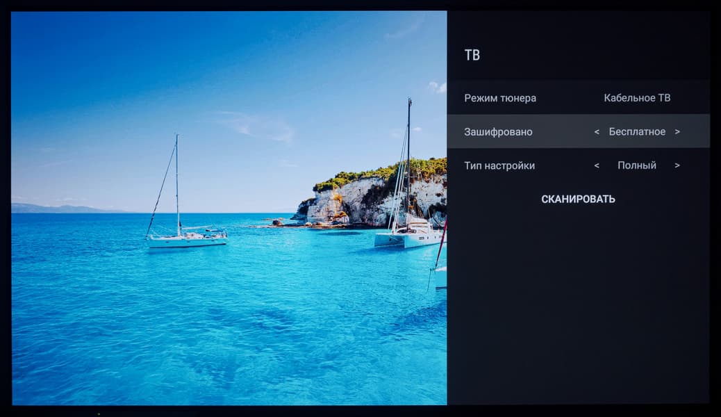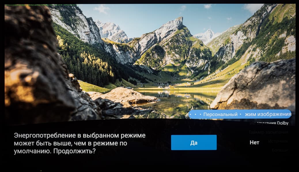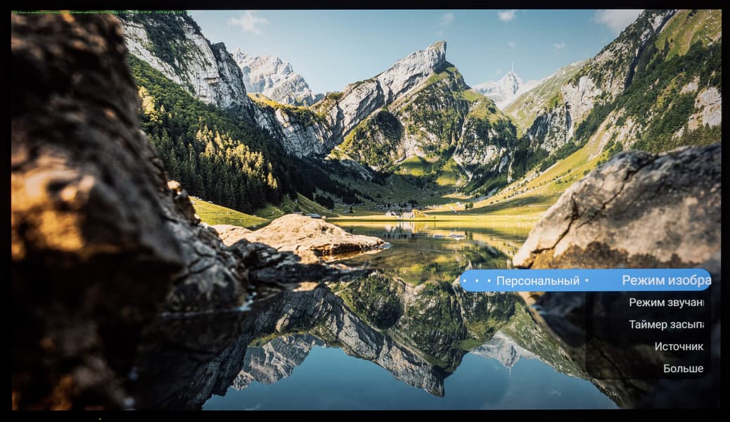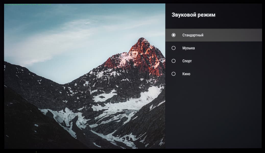 Основной блок настроек системы представлен в хорошо знакомом виде — как у всех ТВ-устройств с Android TV на борту. Настроек, в частности настроек изображения, много. Они доступны, например, из меню настроек, вызываемого с домашней страницы, либо из упрощенного полупрозрачного контекстного меню, в котором представлены предустановленные режимы изображения, режимы аудио (разные настройки эквалайзера), таймер засыпания, выбор источника и пункт «Больше», открывающий основной блок меню.