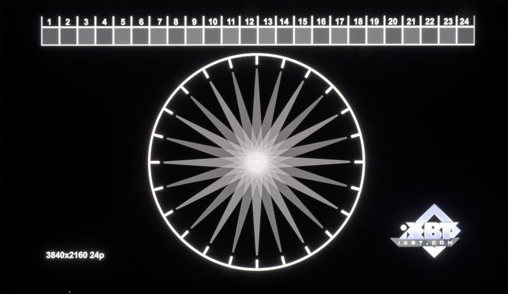 Если посмотреть на неравномерность при переходе к более темным серым оттенкам с их выводом на всю площадь экрана ТВ, то лишь на самых темных из них можно заметить слабовыраженный высокочастотный шум (эффект грязного экрана), что свойственно подавляющему числу OLED-экранов.