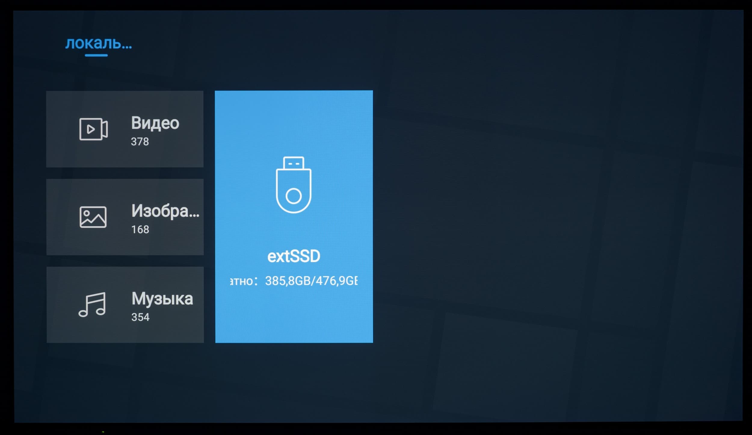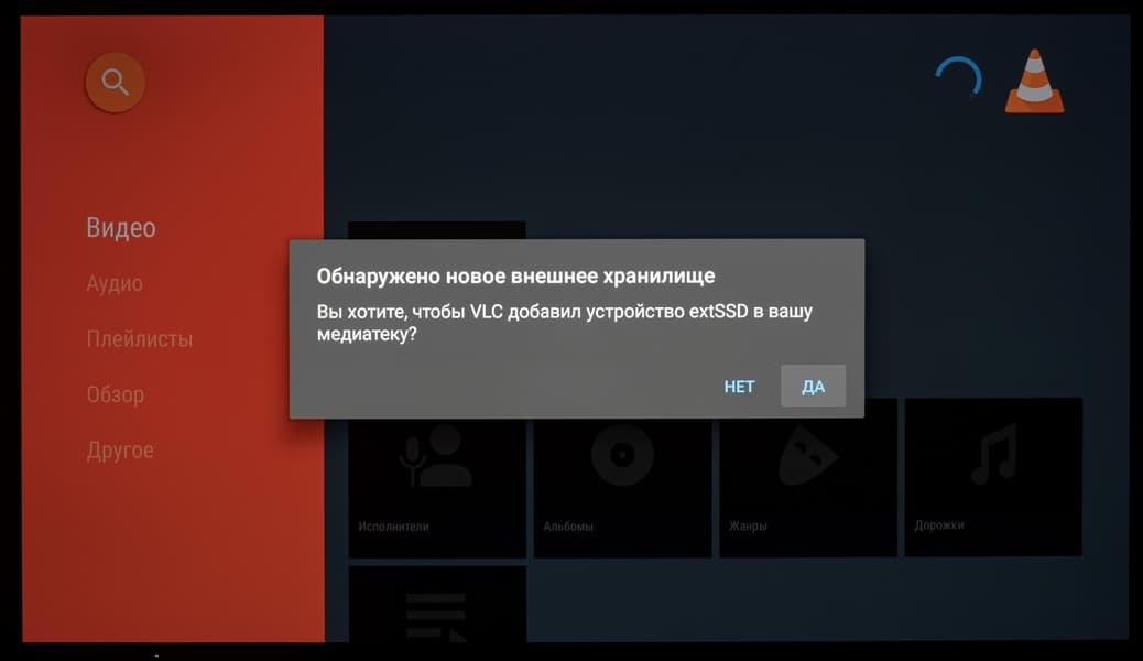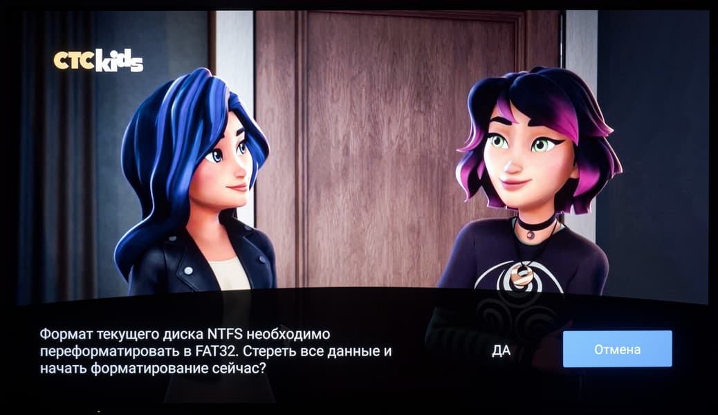 При подключении внешнего накопителя система уведомляет о его обнаружении. При переходе к уведомлению (в том числе и через отдельный блок со всеми собранными системой уведомлениями) вы можете открыть доступ к диску через встроенный проводник (с крайне ограниченной функциональностью), воспользоваться диском для записи ТВ-трансляций через функцию PVR, провести его форматирование средствами системы (накопитель будет отформатирован в FAT32).