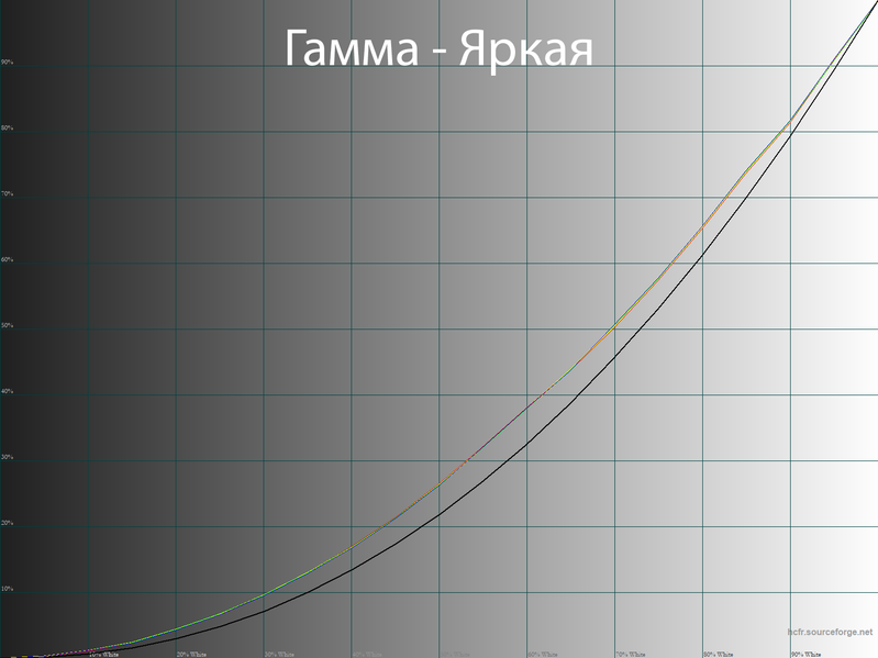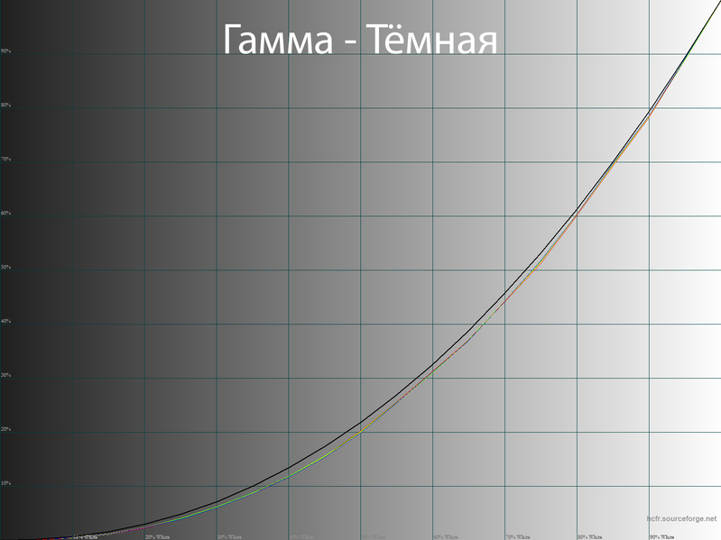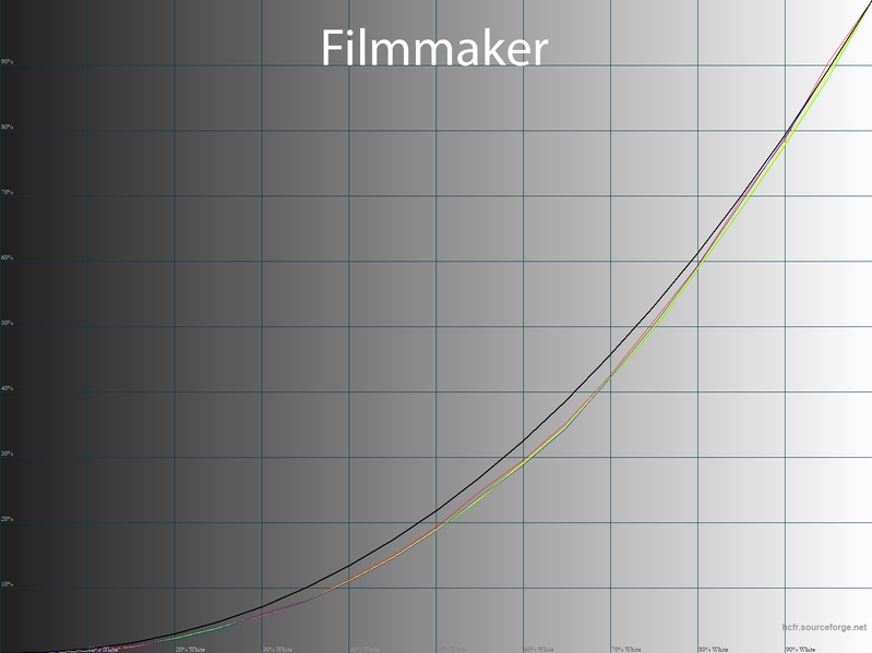 По полученным гамма-кривым при настройках по умолчанию можно судить о максимально точной заводской настройке, за исключением уже отмеченной цветовой температуры. После полноценной настройки мы слегка скорректировали гамма-кривые, но основная масса пользователей смогут без этого с легкостью обойтись. Что же касается Filmmaker, то в нем заблокированы почти все настройки изображения, а производитель, очевидно, воспользовался стандартом Rec.709 (но сохранив цветовой охват на высоком уровне) и привел гамму к значению 2,4, что визуально обеспечивает повышение контраста изображения.