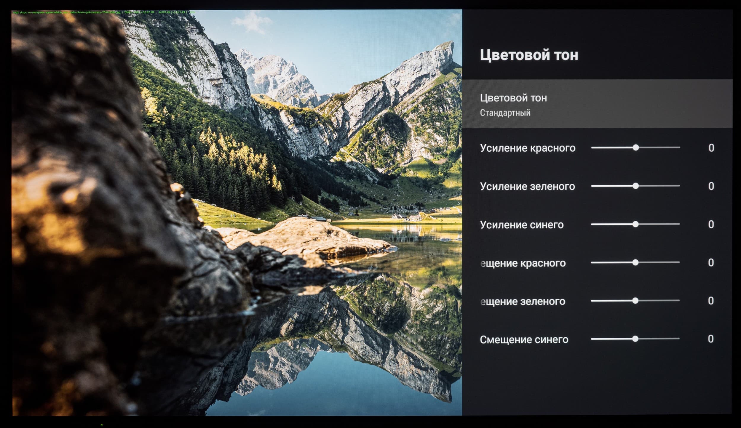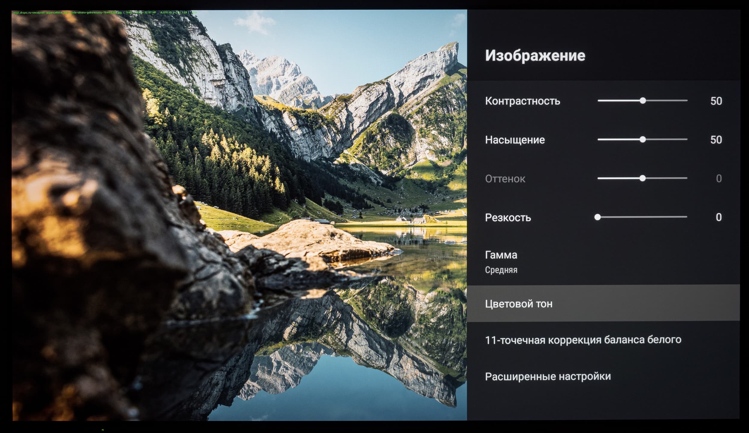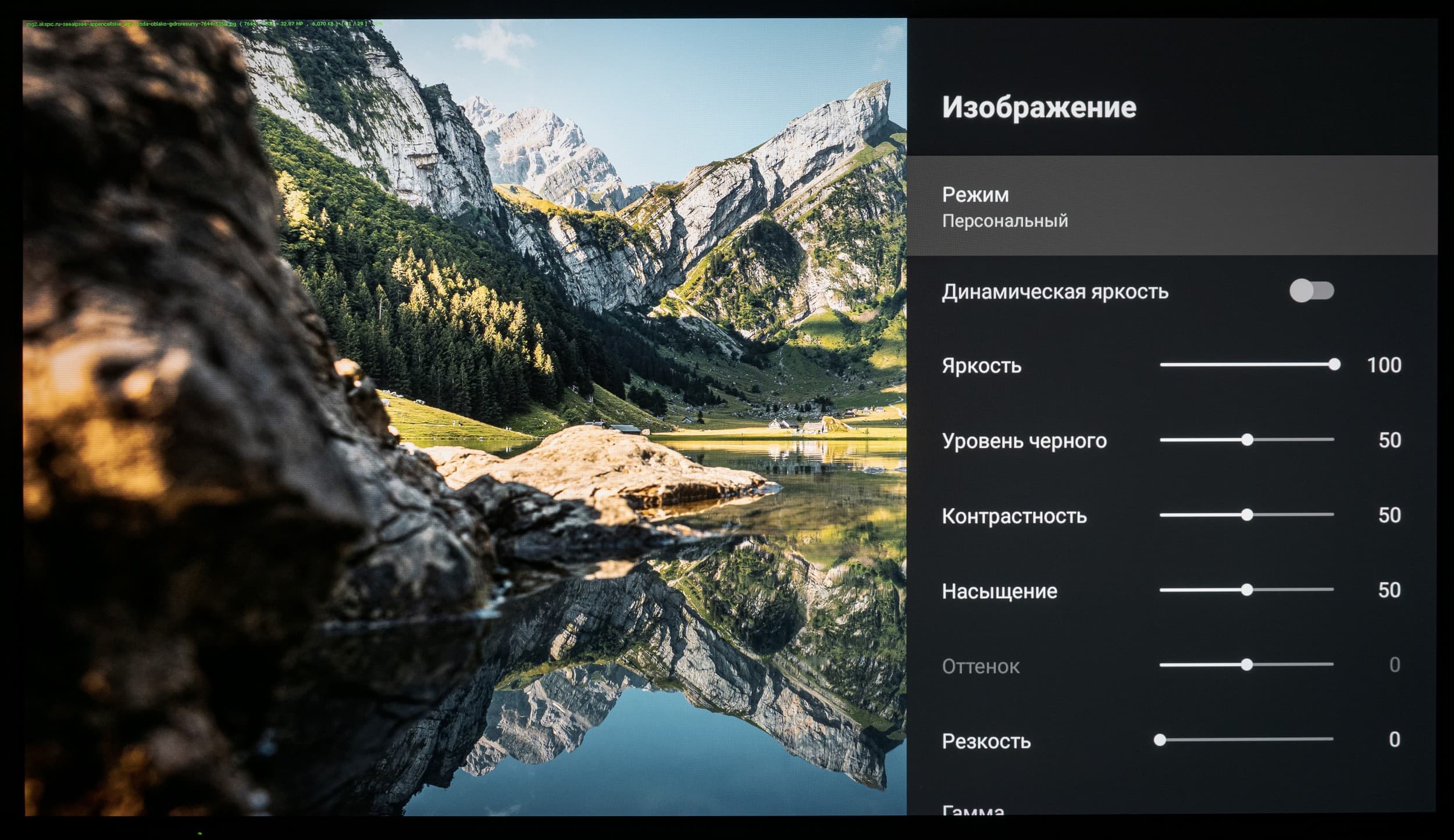 Для остальных же режимов пользователь может проверить несколько доступных режимов настройки гаммы. Среди доступных режимов гаммы по умолчанию выбран «Средняя» (гамма 2,13). На фоне двух других именно он выглядит оптимальным для постоянного использования и дальнейшей настройки. Если же есть желание несколько снизить или увеличить визуальную контрастность картинки на экране телевизора, то можете воспользоваться режимами «Яркая» (гамма 1,91) и «Темная» (гамма 2,31).