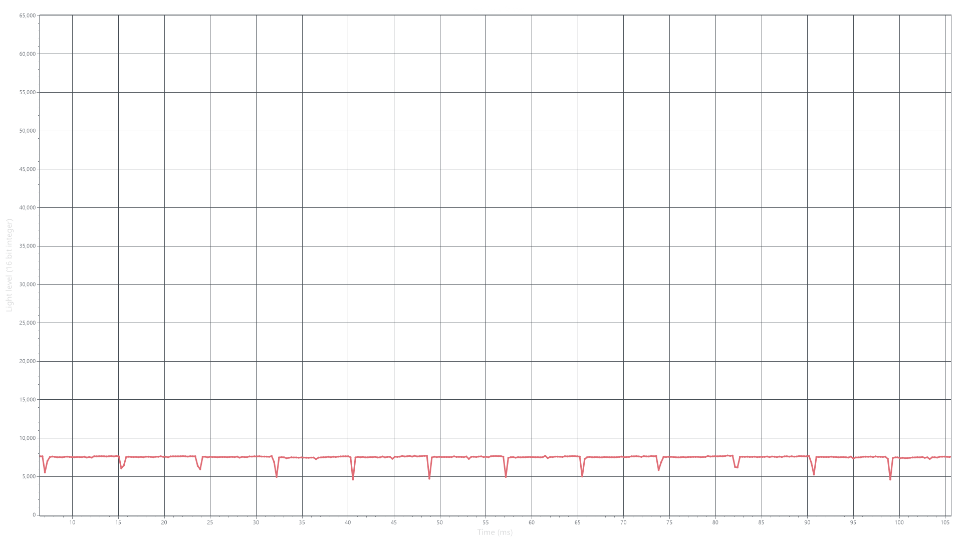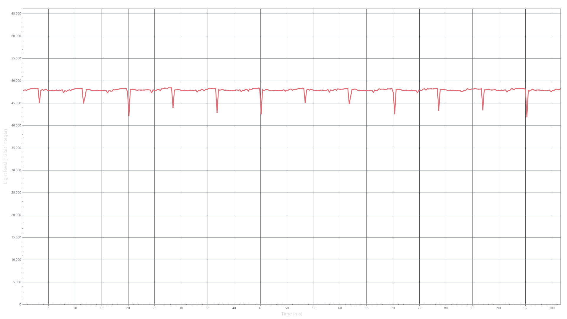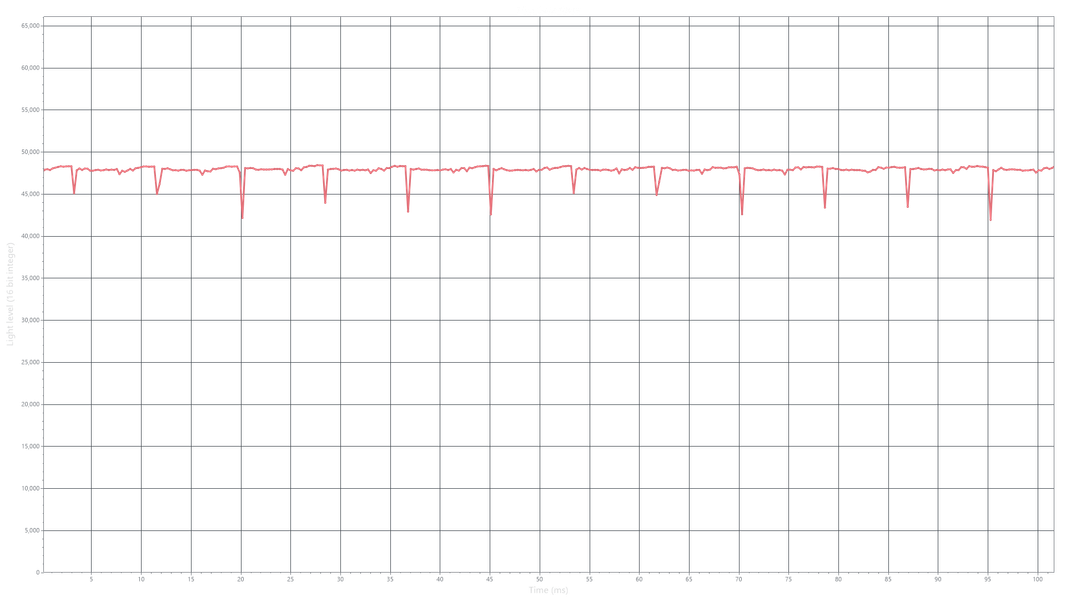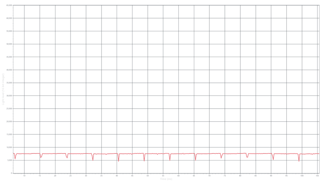 На любом уровне яркости видимое мерцание отсутствует, его не выявляет и тест на стробоскопический эффект. Регистрация зависимости яркости от времени при различных уровнях яркости выявила модуляцию яркости с очень высоким коэффициентом заполнения, что и объясняет отсутствие мерцания.