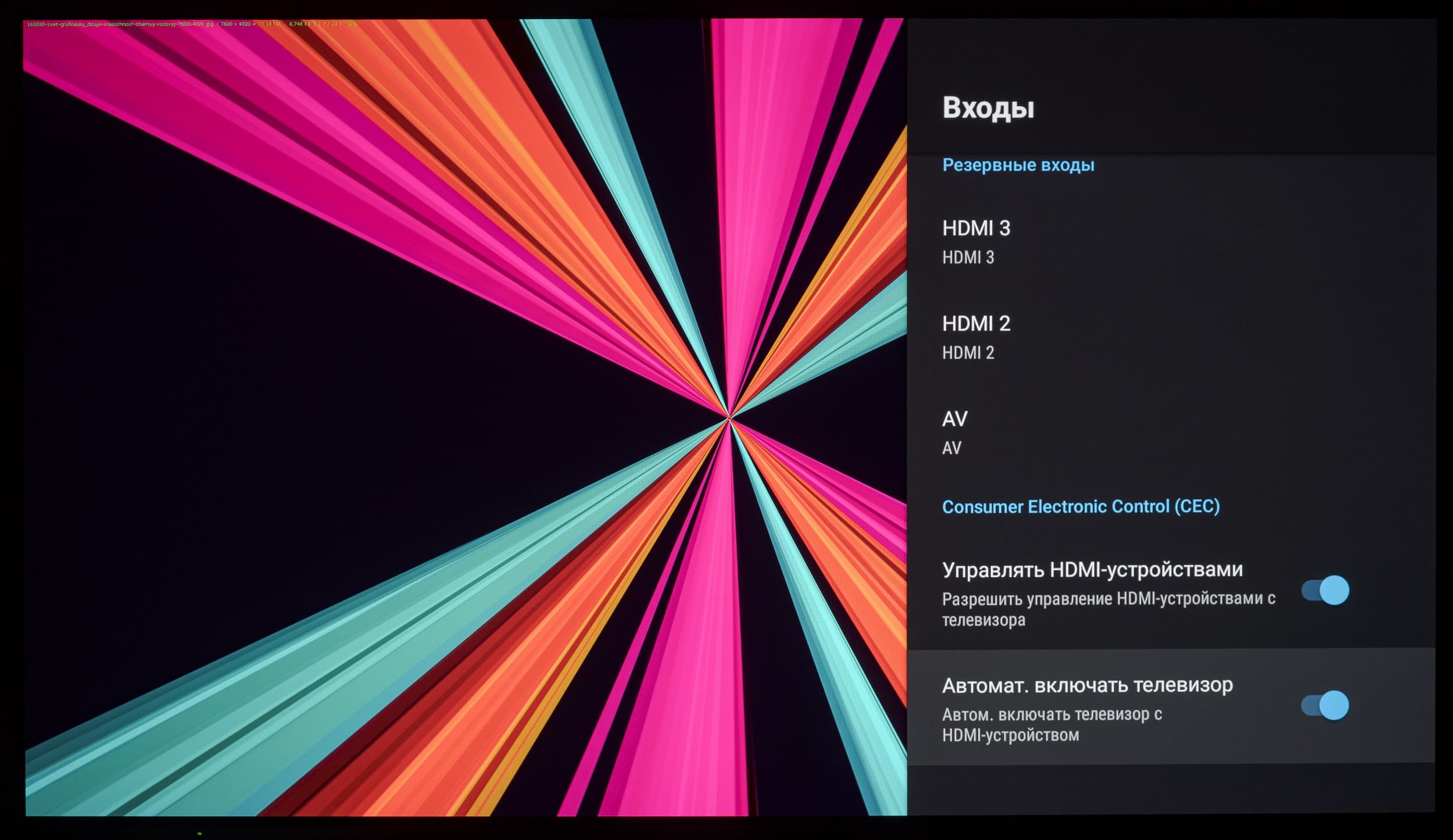 У телевизора есть поддержка управления по HDMI — функция HDMI CEC. В нашем случае она прекрасно работала с ТВ-приставкой Xiaomi Mi Box S и ее стандартным пультом ДУ. Возможно и, наоборот, пультом самого ТВ параллельно активировать, управлять и выключать саму приставку.