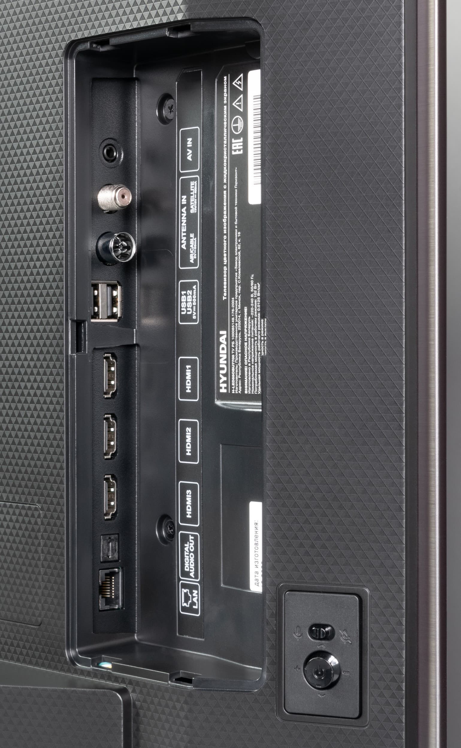 - Голосовой помощник Google с голосовым управлением без пульта (Far Field) и аппаратный переключатель работы микрофона на корпусе ТВ