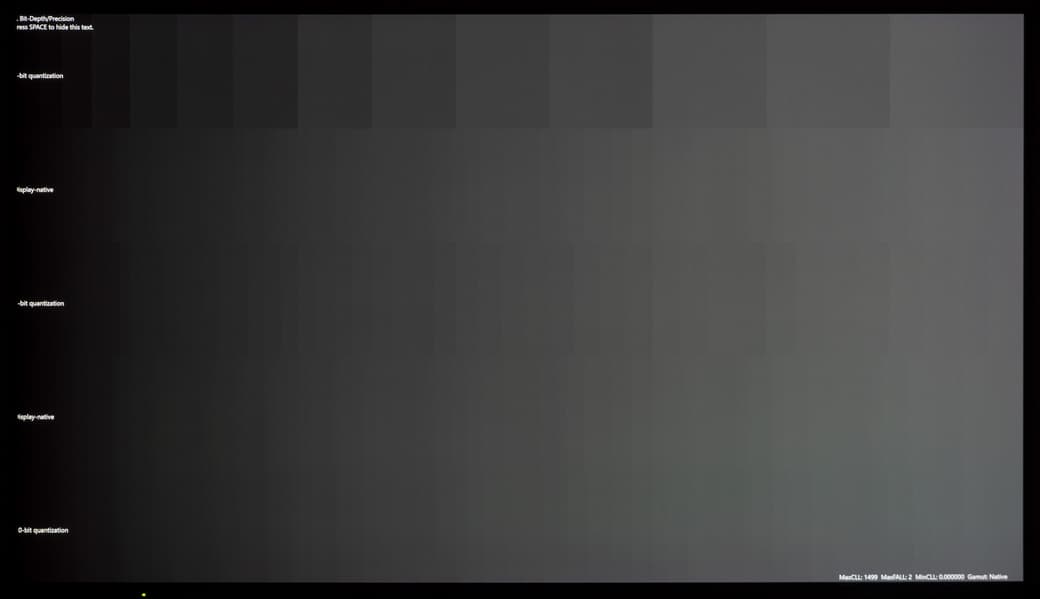 Качественную оценку мы начнем с демонстрации градиентов при выводе изображения в 8-битном и 10-12-битных режимах (программная эмуляция со стороны ТВ либо GPU в случае подключения к ПК/ноутбуку).