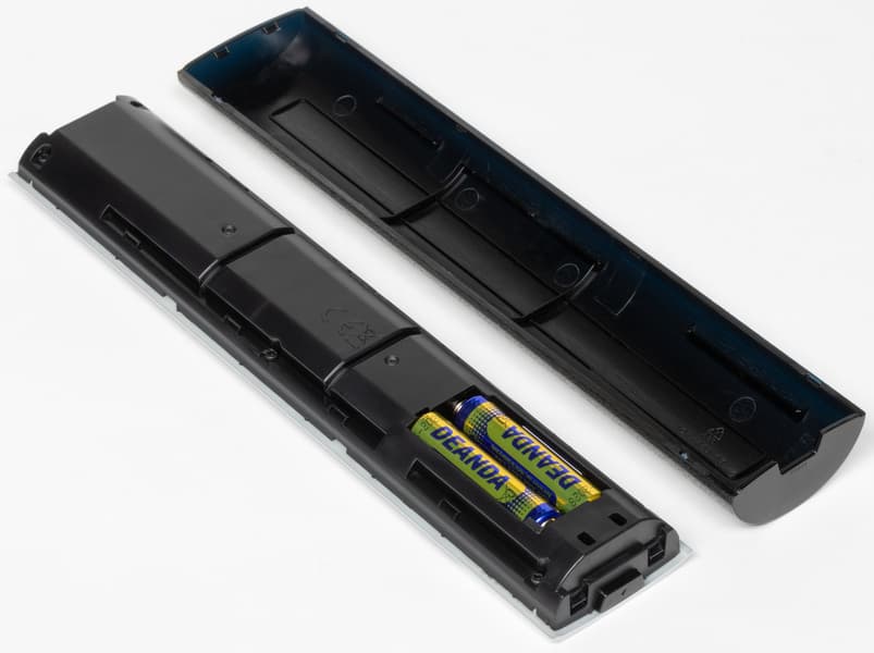Пульт гибридный, он может работать как по ИК, так и по Bluetooth (для этого требуется однократно зажать определенное сочетание клавиш на пульте на протяжении 6—8 секунд). По ИК пульт работает до сопряжения с телевизором или когда телевизор находится в неглубоком или глубоком сне. Во всех остальных случаях ИК-передатчик не работает, команды передаются по Bluetooth. В передней части пульта рядом с индикатором есть отверстие микрофона.