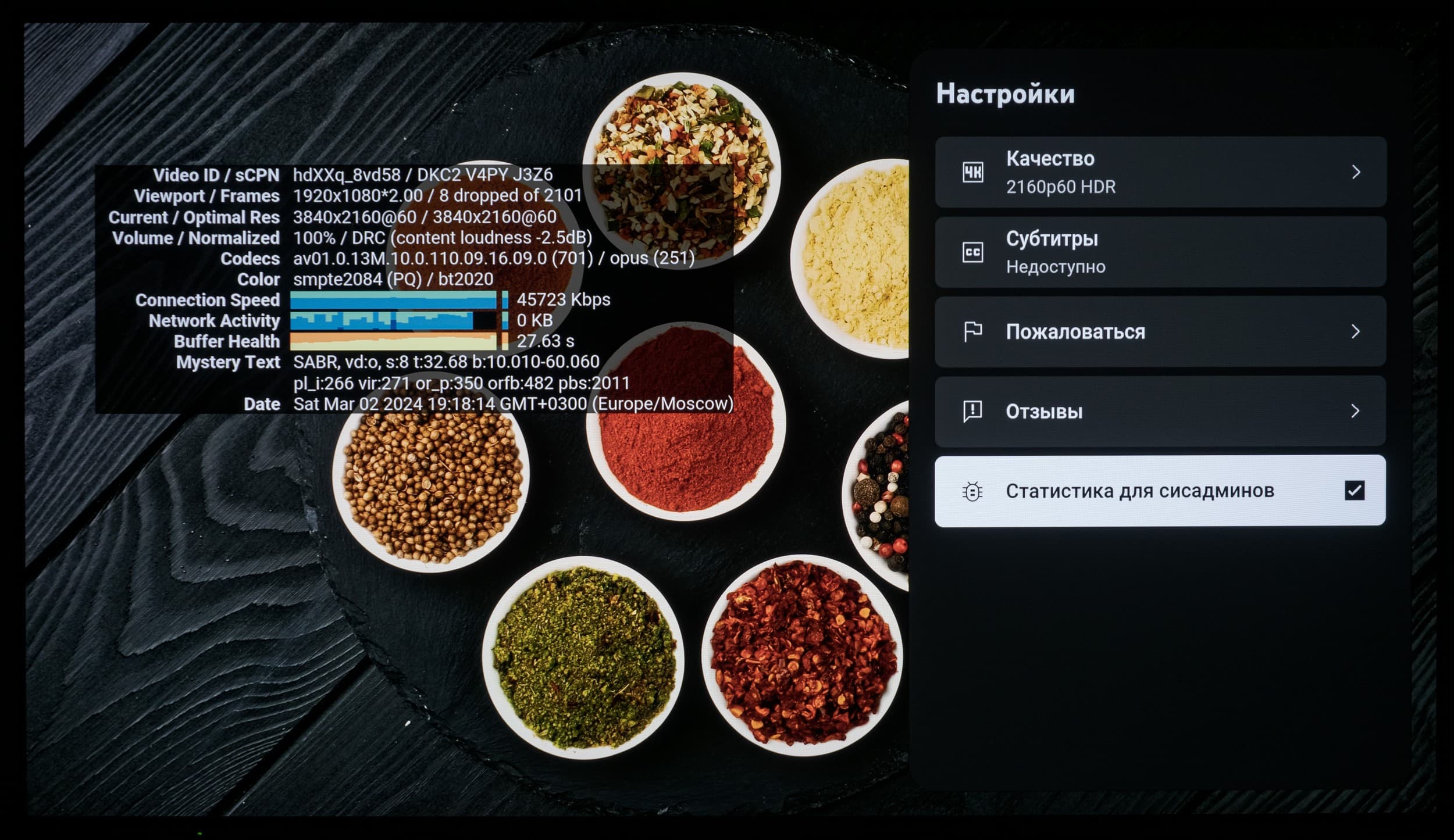 Наполнение контекстного меню может отличается в зависимости от источника изображения, воспроизводимого контента, его формата и доступных HDR-метаданных. В некоторых случаях часть настроек, ответственных за цветопередачу и качество изображения, может быть недоступна пользователю. Также включение некоторых функций приводит к ограничению работы других — они становятся недоступны (заблокированы). Впрочем, в случае с Android TV/Google TV таких ограничений всё же меньше, чем на других платформах, это факт.