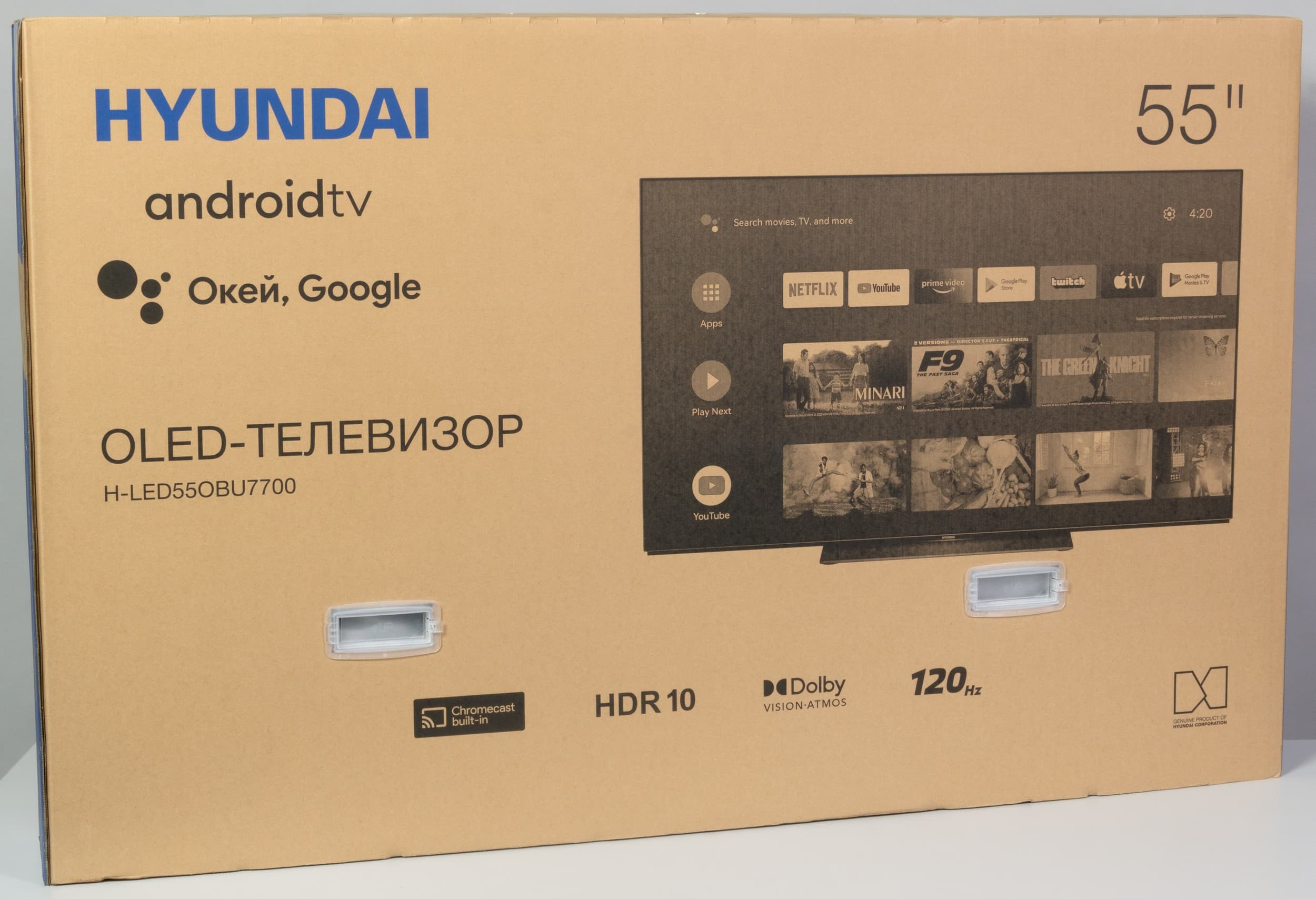 В этом материале речь пойдет про 55-дюймовый 4K OLED-телевизор под названием Hyundai H-LED550BU7700 с оболочкой Android TV на базе Android 10. Модель стабильно продается, а совсем недавно производитель снизил рекомендованную розничную стоимость до 99990 рублей (с изначальных 130 тысяч), что сделало ее куда более привлекательной покупкой.