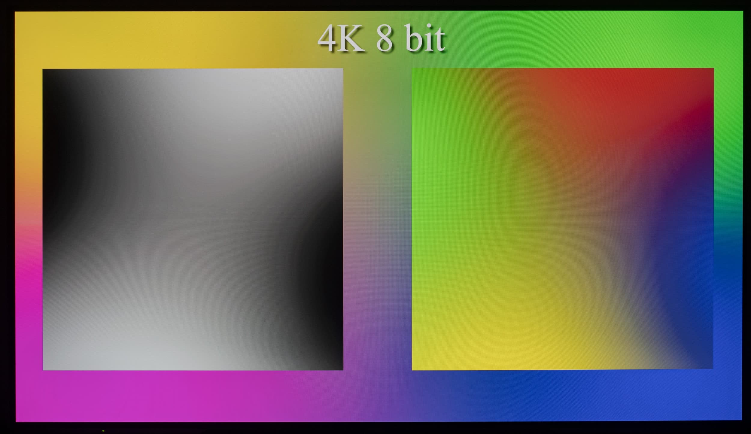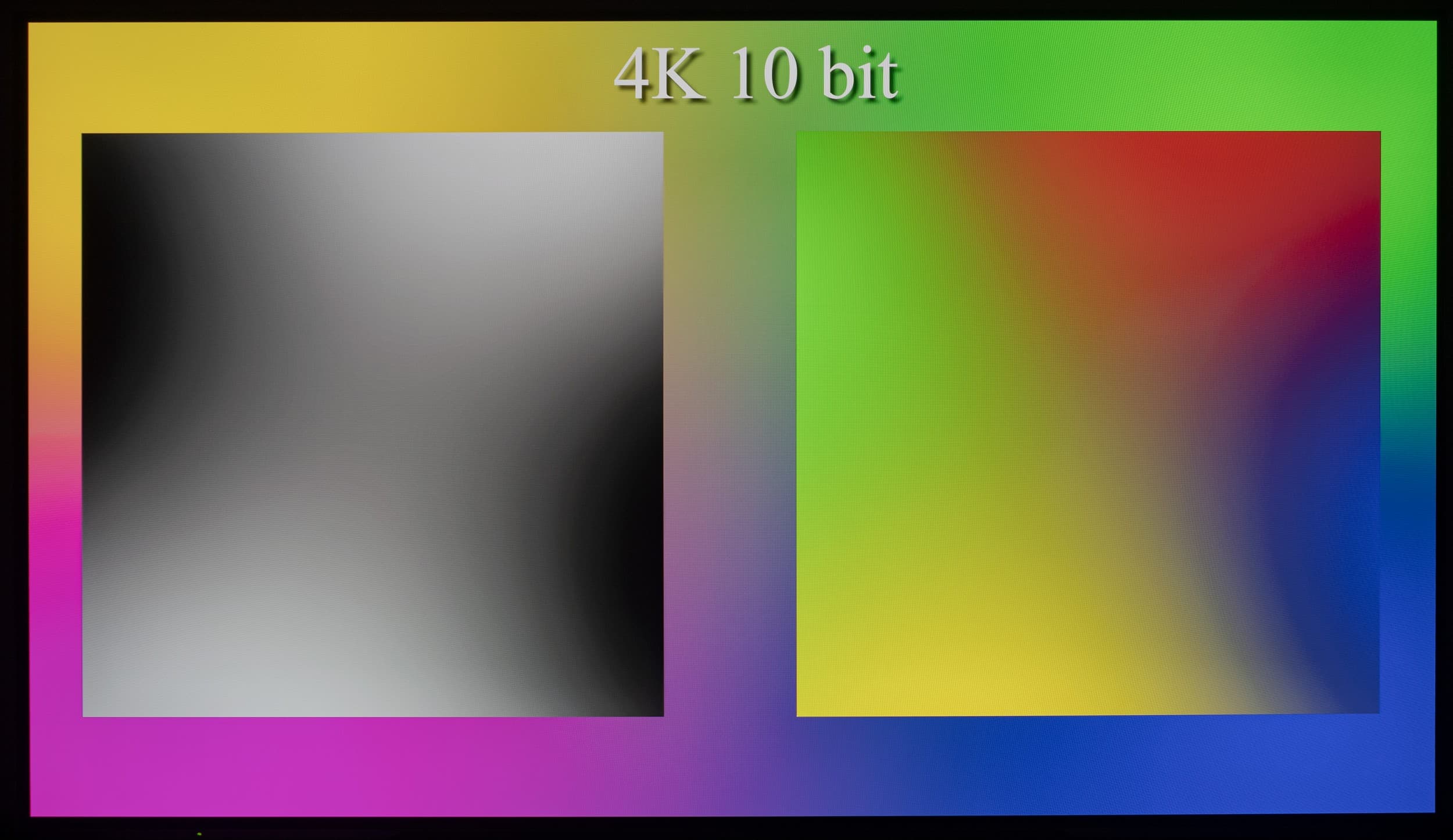 Наглядно видно, что телевизор способен выводить градиенты в 10-битном режиме более качественно, чем в стандартном 8-битном. Но в большей степени это будет актуально при выводе HDR-контента с соответствующими требованиями к ТВ. Использование же программной эмуляции до 12 бит через драйвер видеокарты не приносит видимых преимуществ над 10-битным выводом сигнала.