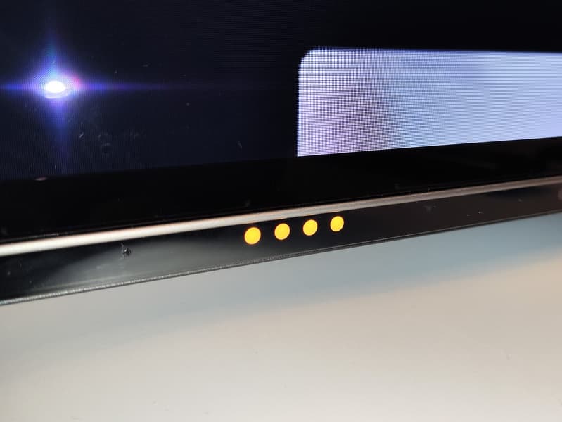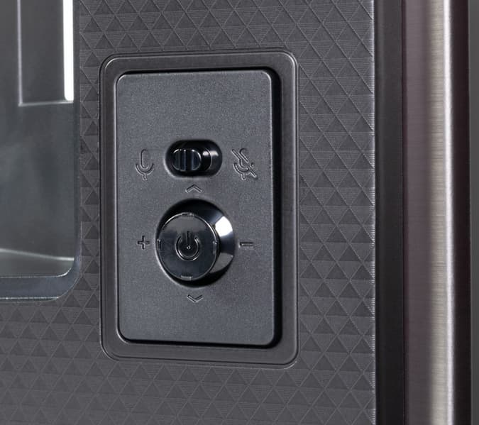 При отключении функции Far Field через аппаратный переключатель, расположенный в задней части корпуса у джойстика управления, четыре индикатора загораются желтым цветом, что означает принудительное выключение встроенных микрофонов в корпусе ТВ. При бездействии системы индикаторы неактивны, а при активации ассистента голосом загораются белым.