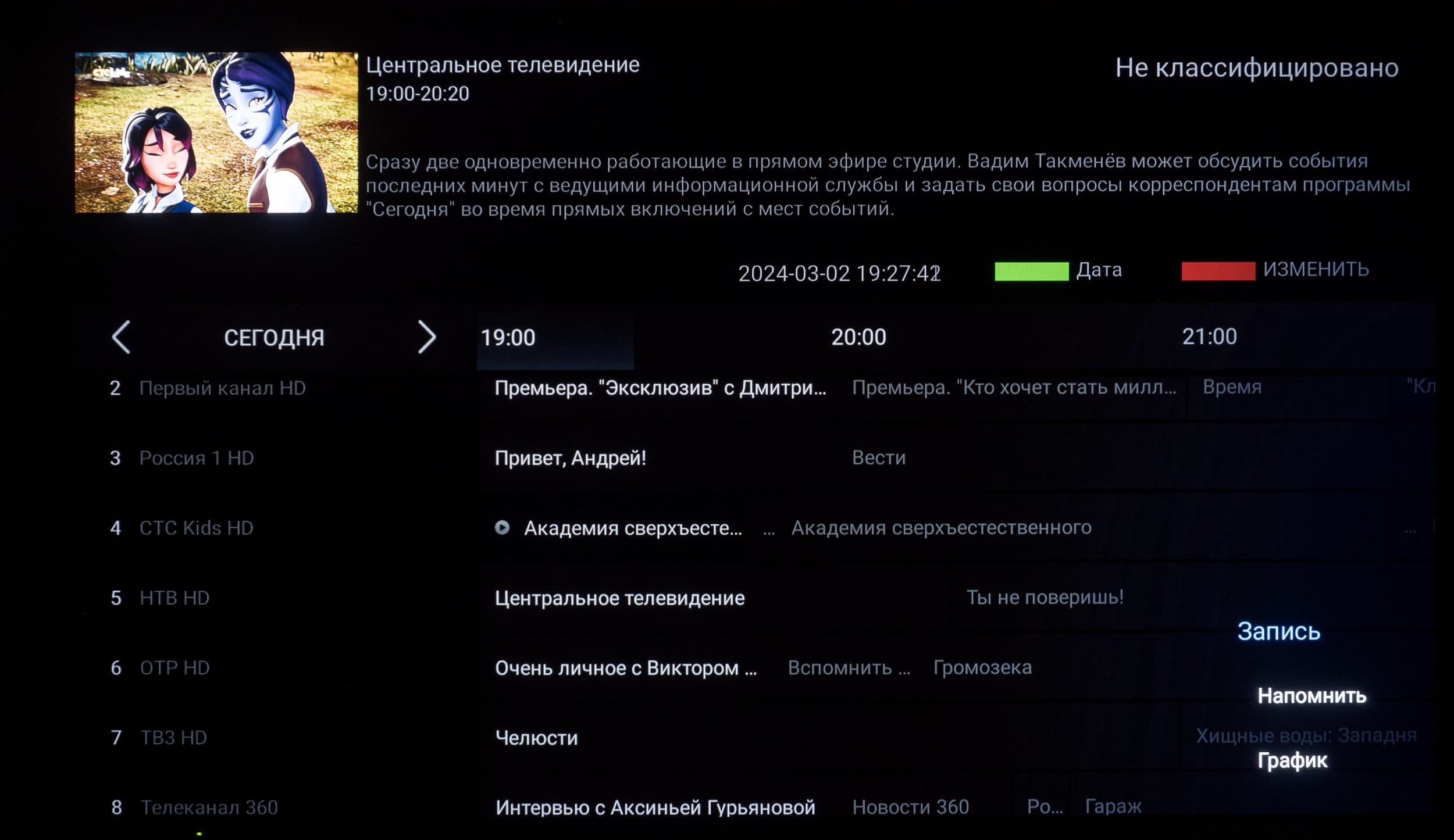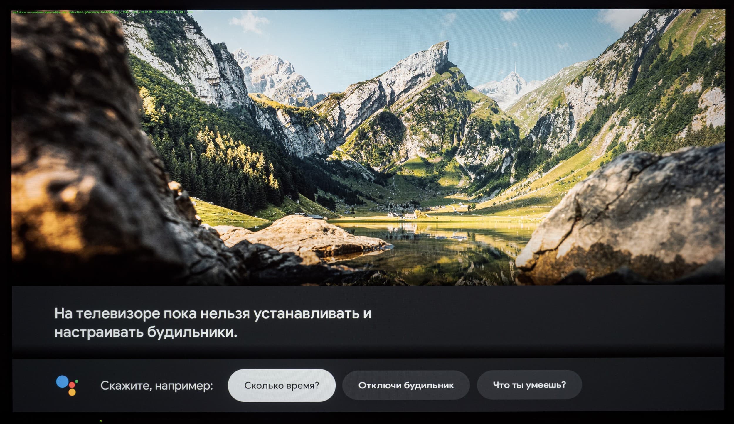 Следует отметить, что в ряде программ работает голосовой ввод текста. Также есть базовая интеграция с самим ТВ, например голосом можно менять громкость, выключать/включать звук, открывать меню с настройками, выбирать нужный вход и запускать программу по ее названию (но лишь если вы правильно ее назовете, без излишнего акцента). Еще можно вывести на экран программу телепередач и переключиться на ТВ-канал по его названию. Можно выставить даже будильник, но впоследствии помощник почему-то говорит, что функция установки будильника недоступна.