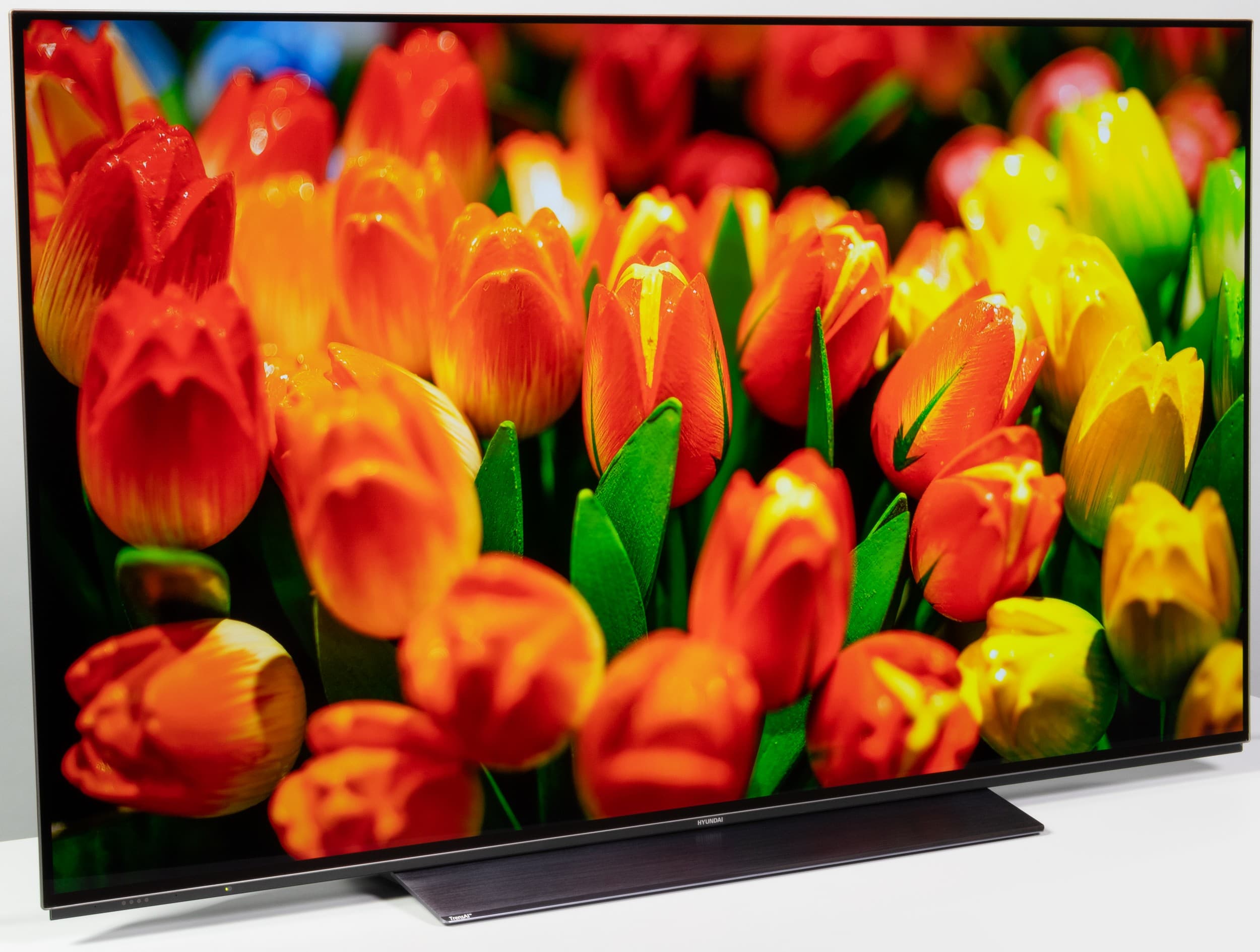 Такой подход исповедует и бренд Hyundai, телевизоры под которым сейчас производятся/собираются на белорусском заводе «Горизонт», и их ассортимент насчитывает пару десятков моделей. Есть среди них и представители класса OLED, не только построенные на базе W-OLED-панелей LG Display, но и крайне похожие внешне на модели телевизоров самой LG. Смело!